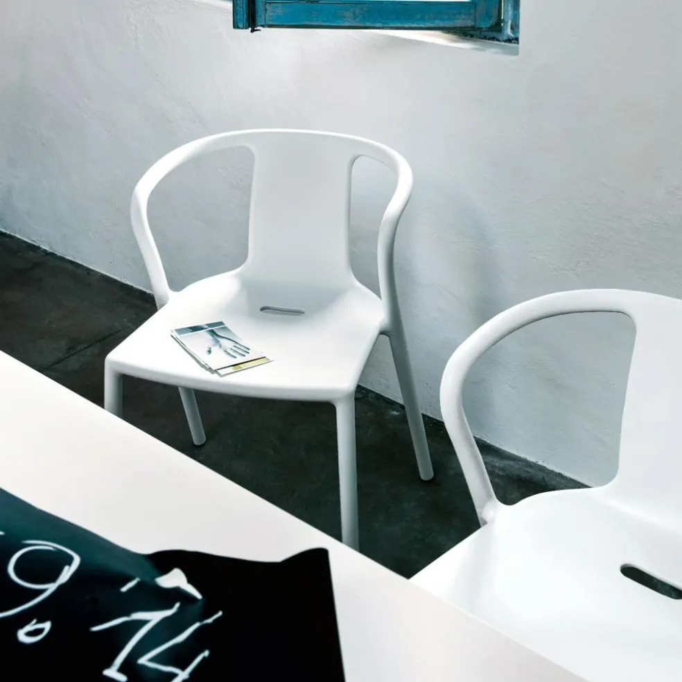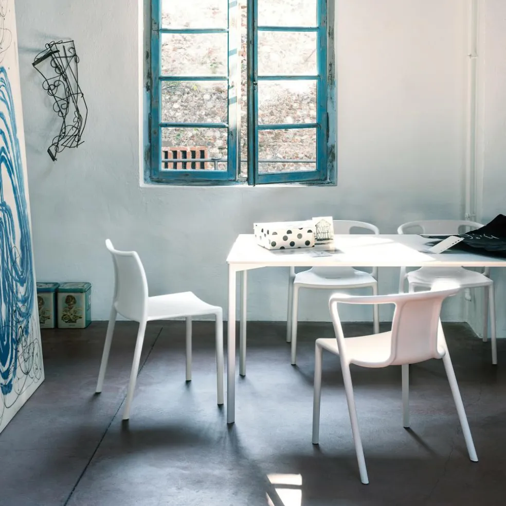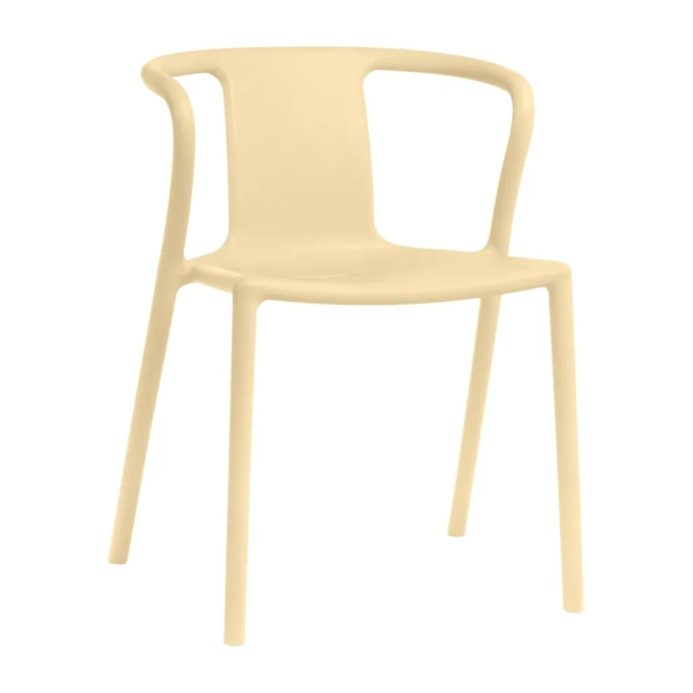 Zu den Vorteilen des Air Armlehnstuhls zählen seine geraden Gestaltungslinien und raffinierte Alleinstellungsmerkmale wie die offene Rückenfläche. Hier fühlt man sich auch an warmen Tagen jederzeit wohl beim Sitzen. Das herausstechende Merkmal sind bei der Kreation von Jasper Morrison aber natürlich die nach hinten ausgestellten Stuhlbeine, die dem Stuhl eine besonders dynamische und beinahe schon ein wenig exzentrisch anmutende Stuhlbeine. Sie verleihen dem Design eine ganz eigene organische Anmut. Mit diesem 51 x 53 x 73 cm großen Stuhl von Magis bekommen Sie ein Highlight geboten, das in allen Räumen gut zur Geltung kommt. Ob in Küchen oder Kinderzimmern, überall zaubern diese Stühle ein aus Polypropylen ein Lächeln auf jedes Gesicht. Darüber hinaus sind sie in verschiedenen Farben verfügbar