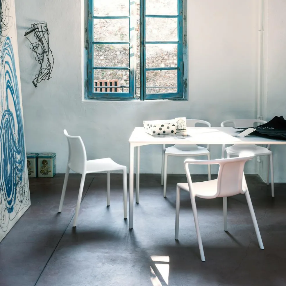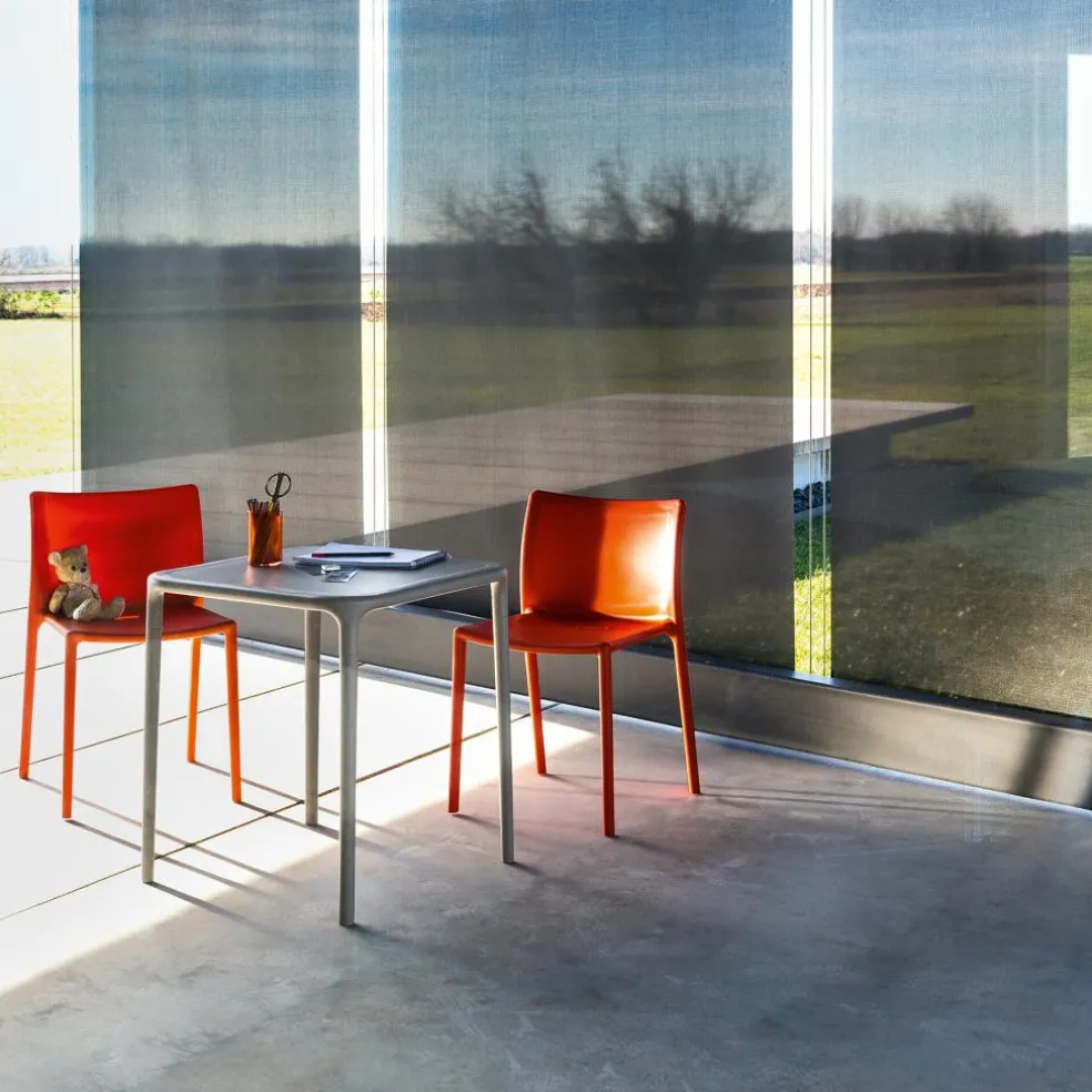 Der Air Stuhl wurde von Jasper Morrison für die Marke Magis entworfen. Er ist Teil der Magis-Air-Kollektion, die durch ihre klaren, leicht wirkenden Formen auffällt.