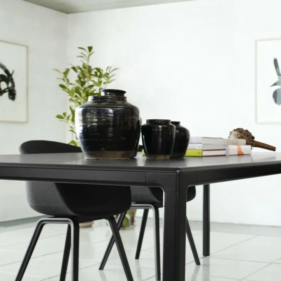 Die Höhe des nicht stapelbaren About a Chair 23 Armlehnstuhls beträgt 79 cm, die Sitzhöhe befindet sich auf 46 cm. Der 59 cm breiten und 52 cm tiefe Stuhl wird mit einem flauschigen Lammfell geliefert.