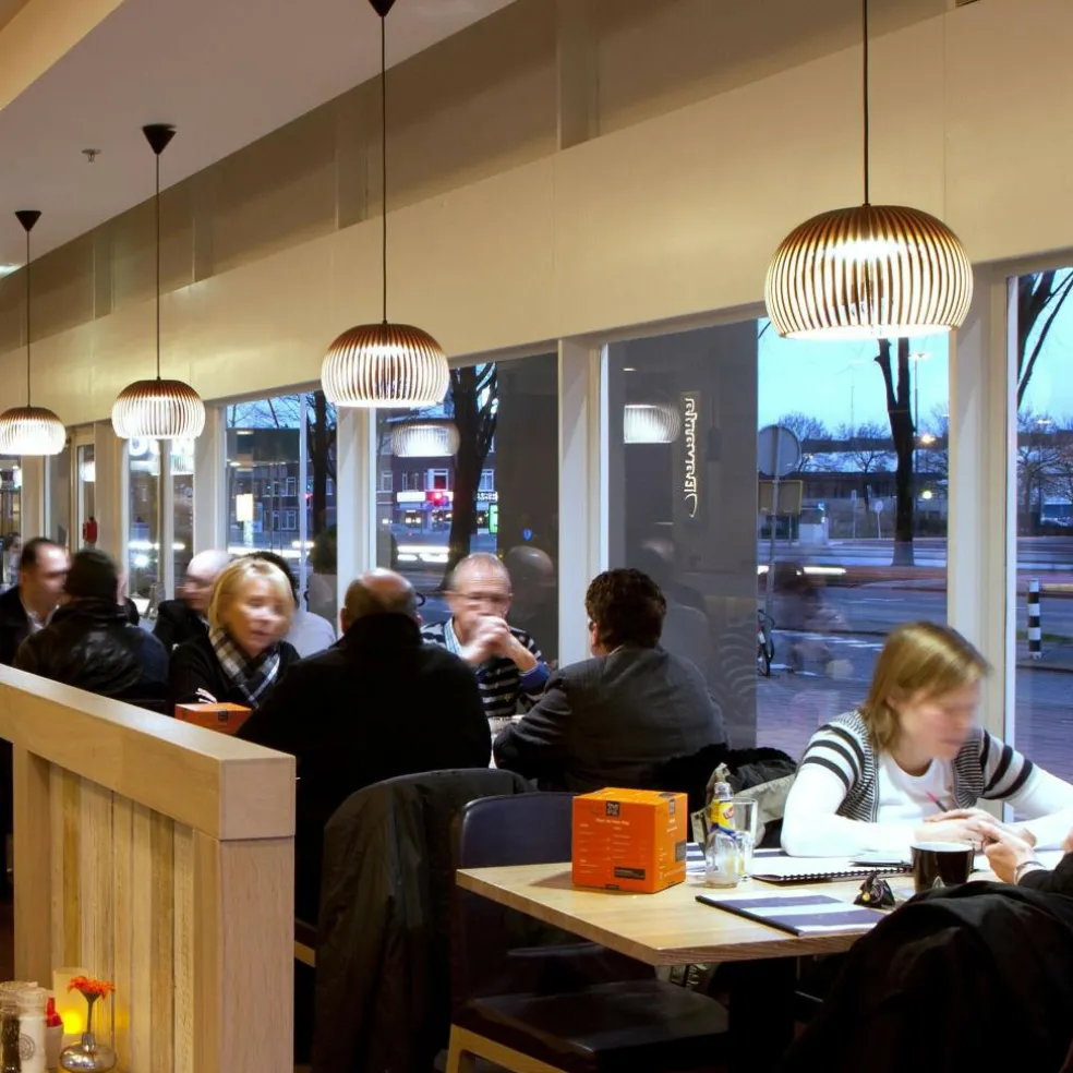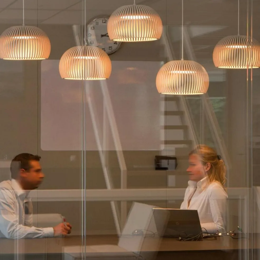 Der Lampenschirm besteht aus unbehandelten Birkenholzleisten, die durch eine Konstruktion aus Flugsperrholz zusammengehalten werden. Die Konstruktion der Atto 5000 LED Pendelleuchte wird nur in die Hände von finnischen Fachleuten gegeben. Die hochwertige Verarbeitung der Atto 5000 LED Pendelleuchte gibt dieser Entscheidung Recht.