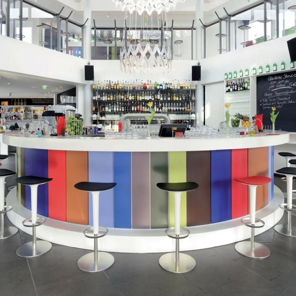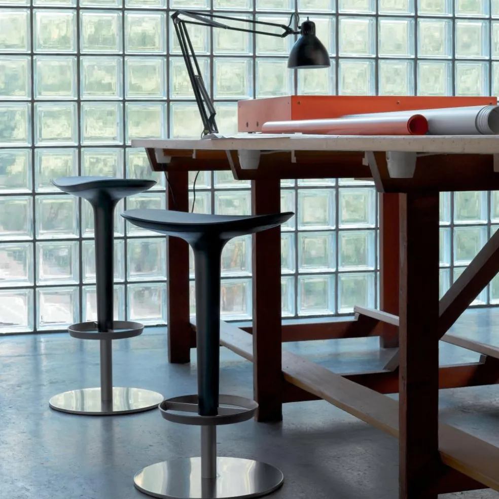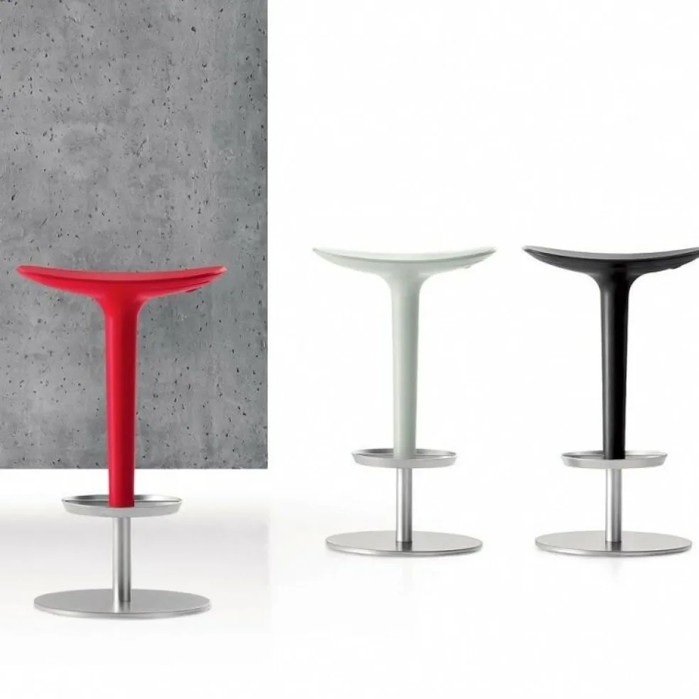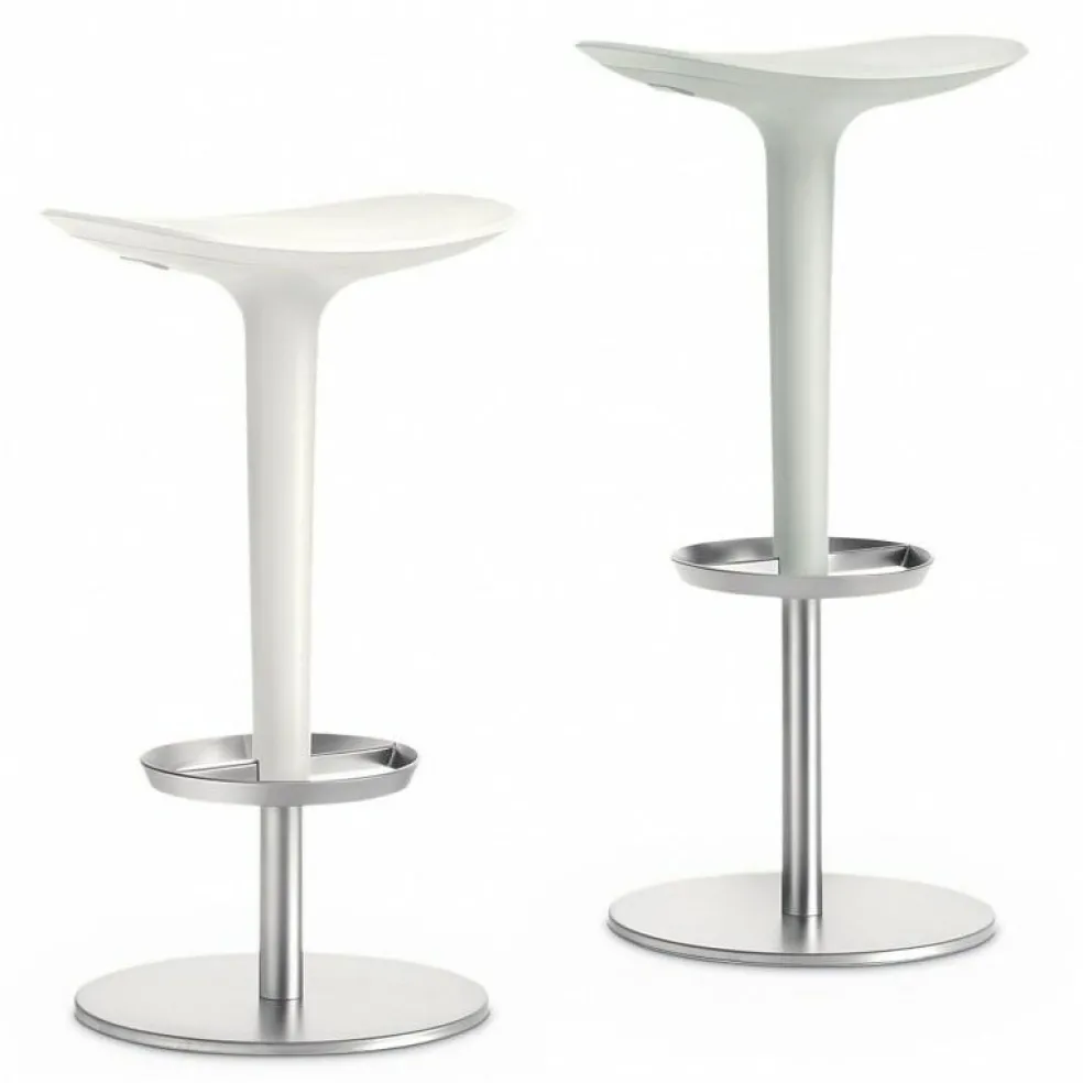Der frische und kultige Babar Hocker ist die ideale Wahl für sowohl eine lockere Einrichtung zuhause, als auch modisch elegante, öffentliche Räume. Entworfen wurde er von Simon Pengelly für den italienischen Hersteller Arper. Er kommt in einer Reihe von einfarbigen Versionen und, auf Wunsch, auch in zweifarbigen Kombinationen für eine optisch beeindruckende Wirkung auf jeden Raum. Babar ist aus Kunststoff, mit einem ergonomisch geformtem Sitz komplett aus weichem Polyurethan. Der Fuß aus satiniertem Edelstahl mit eingebauter Fußstütze ist mit einem Gasmechanismus ausgestattet, der den Hocker höhenverstellbar macht.