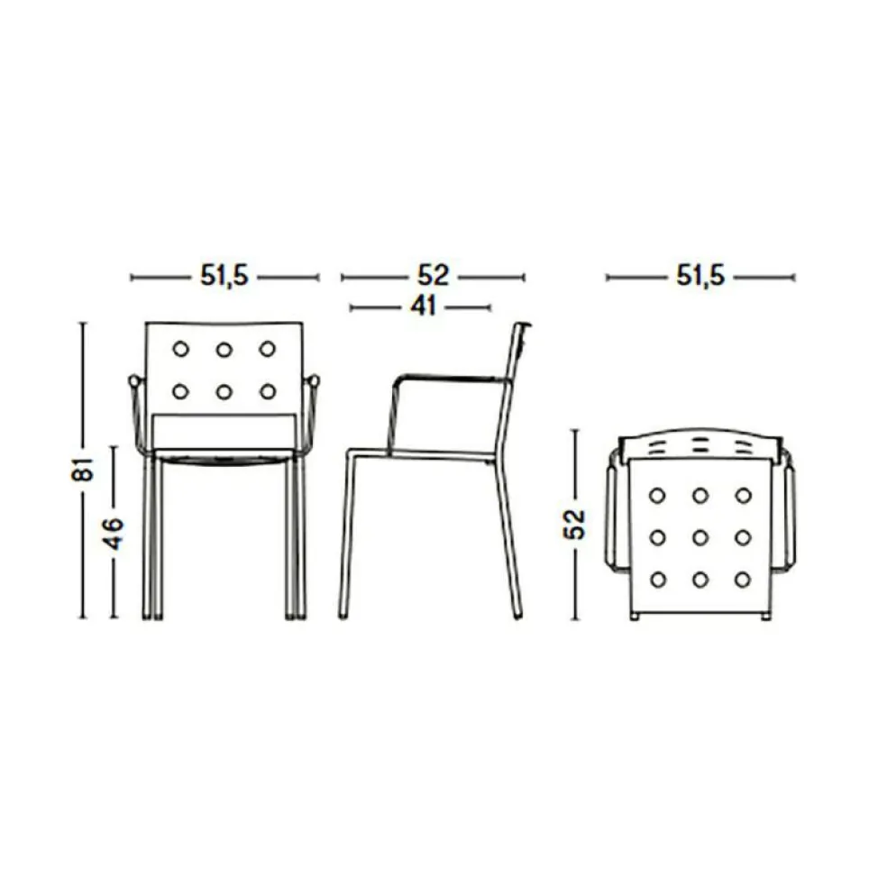 Gefertigt aus robustem Stahl, ist der Balcony Dining Gartenarmlehnstuhl speziell für den Einsatz im Freien konzipiert. Eine zweischichtige Beschichtung aus Outdoor-Primer und wetterfester Pulverbeschichtung schützt zuverlässig vor Korrosion und sorgt für eine langlebige Oberfläche – unabhängig von Wetter und Jahreszeit. Die integrierten Armlehnen erhöhen den Sitzkomfort, während die schlichte Formgebung vielseitig kombinierbar bleibt. Mit einer Breite von 51,5 cm, einer Höhe von 81 cm, einer Tiefe von 52 cm und einer Sitzhöhe von 46 cm bietet der Stuhl eine angenehme Ergonomie für längere Aufenthalte im Freien – ob am Esstisch, auf dem Balkon oder in der Gastronomie. Besonders praktisch: Der Balcony Dining Gartenarmlehnstuhl ist stapelbar bis zu zwölf Exemplaren und somit ideal für Orte, an denen Flexibilität und platzsparendes Verstauen gefragt sind. Kunststoffgleiter aus recyceltem Material schützen empfindliche Untergründe, während die Pflege unkompliziert bleibt: Ein feuchtes Tuch und milder Reiniger genügen für die regelmäßige Reinigung.