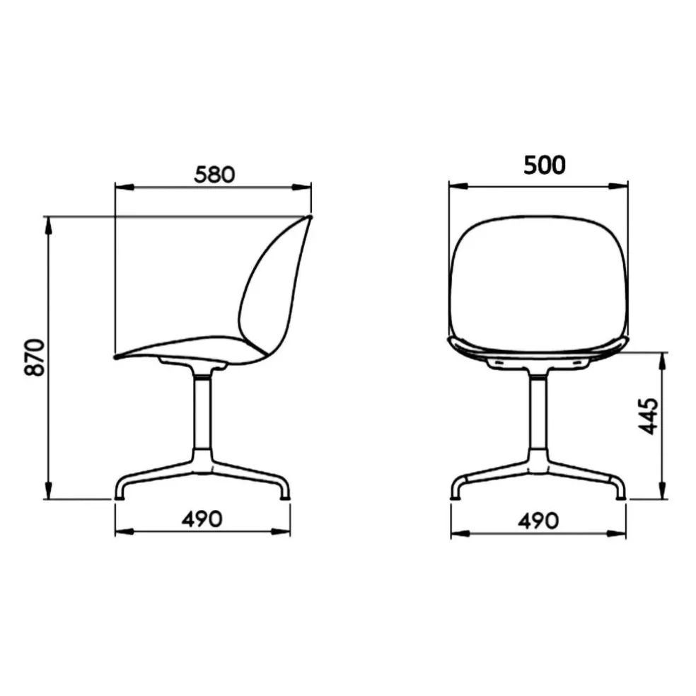 Der Beetle Meeting Stuhl Gestell 4-Stern drehbar wurde von dem Designer-Duo GamFratesi für den dänischen Hersteller GUBI entworfen. GamFratesi besteht aus der dänischen Architektin Stine Gam und dem italienischen Industrie-Designer Enrico Fratesi, die in Kopenhagen ein gemeinsames Büro betreiben. Beide verstehen Design als verbindendes Element verschiedener Kulturen, in dem viele wechselseitige Einflüsse zu völlig neuen Gestaltungslösungen führen.