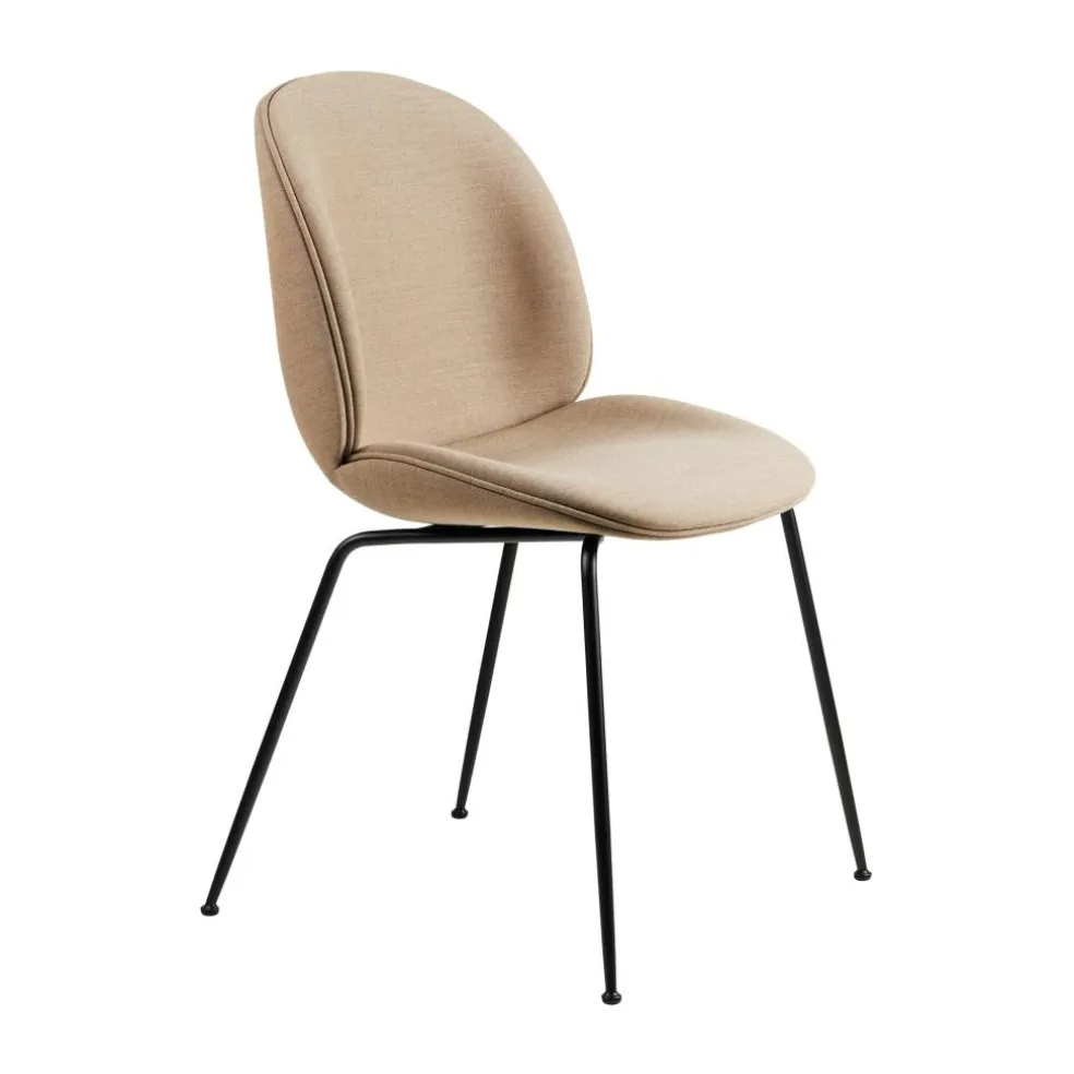 Der Beetle Schalenstuhl Vollpolsterung Gestell konisch wurde von GamFratesi für die Marke Gubi entworfen. Die Idee kam dem Designerduo, als sie an Käfer dachten. Daher rührt auch der Name. Die Sitzschale ist einem Panzer der Insekten nachempfunden und das filigrane Gestell erinnert an die Beine der Insekten.