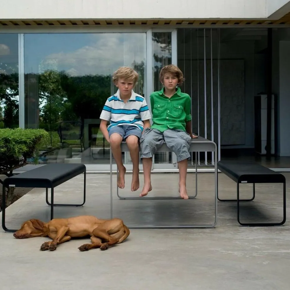 Mit ihrer großzügigen, an den Kanten abgerundeten Sitzfläche wirkt die Bellevie Gartenbank wie eine Einladung zum Platznehmen. Damit passt sie perfekt an die Hauswand neben dem Eingang. Aber auch für einen Platz unter freiem Himmel ist die Designbank ideal. Denn ihre Sitzfläche besteht aus robustem Stahlblech, dessen elektroverzinkte Oberfläche eine langlebige Witterungsbeständigkeit garantiert. Zudem steht die Bellevie Gartenbank auf zwei Rahmen aus flachem Aluminium, die für eine hohe Stabilität sorgen. Ihr formales Design fällt mit weichen Kurven auf. So findet die Form der Sitzkante in den Fußrahmen ihre Fortsetzung. Dies macht die Bellevie Gartenbank zu einem attraktiven Blickfang. Sie passt nicht nur in den Garten, sondern ebenso gut in eine Hotelanlage, einen Park oder auf öffentliche Plätze.