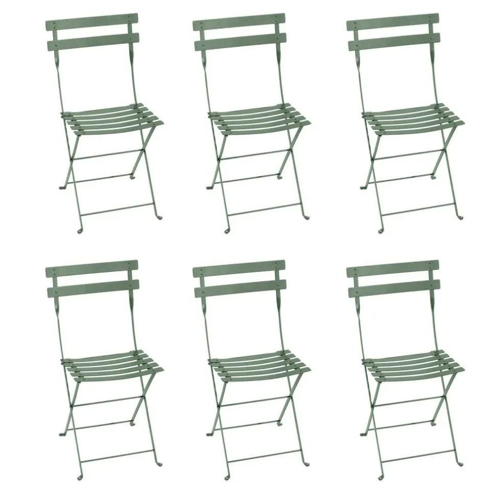 Die Struktur des Bistro Metall Klappstuhls besteht aus lackiertem Stahl in höchster Qualität, die gebogenen Latten aus galvanisiertem lackiertem Stahl. Ein Kunststoffklipp garantiert ein sicheres und langsames Auf- und Zusammenklappen des Stuhls. Die Bistro Metall Stühle von Fermob werden rost- und hochschutzbehandelt und sind daher unempfindlich, wetterfest und U.V. beständig. Je nach Belieben können Sie die Bistro Stühle und Tische sowohl im Außenbereich als auch im Innenbereich verwenden. Verschiedene Farben stehen zur Wahl, siehe unsere „Produktvarianten“.
