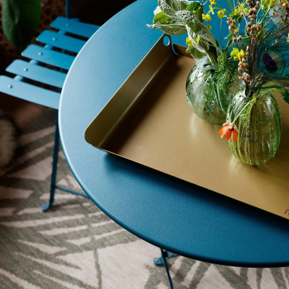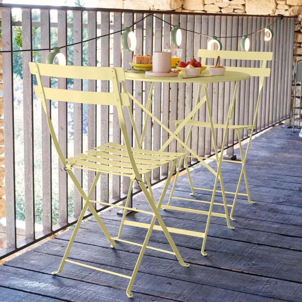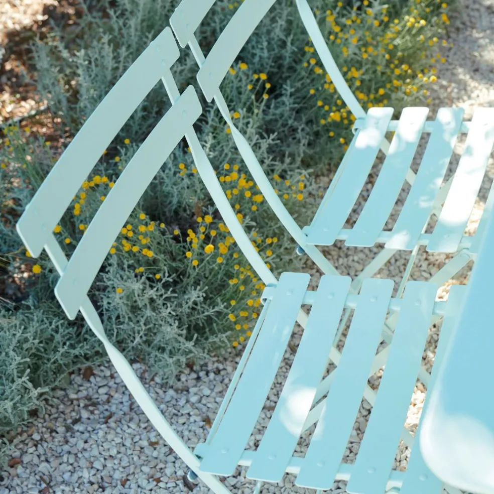 Der Bistro Metall Klappstuhl wurde für die Marke Fermob entworfen. Das Design geht auf ein Konzept aus dem Jahr 1889 zurück, das für die Ausstattung der Pariser Bistros entwickelt wurde. Heute ist der Designklassiker auch im privaten Zuhause ein stylisher Hingucker.