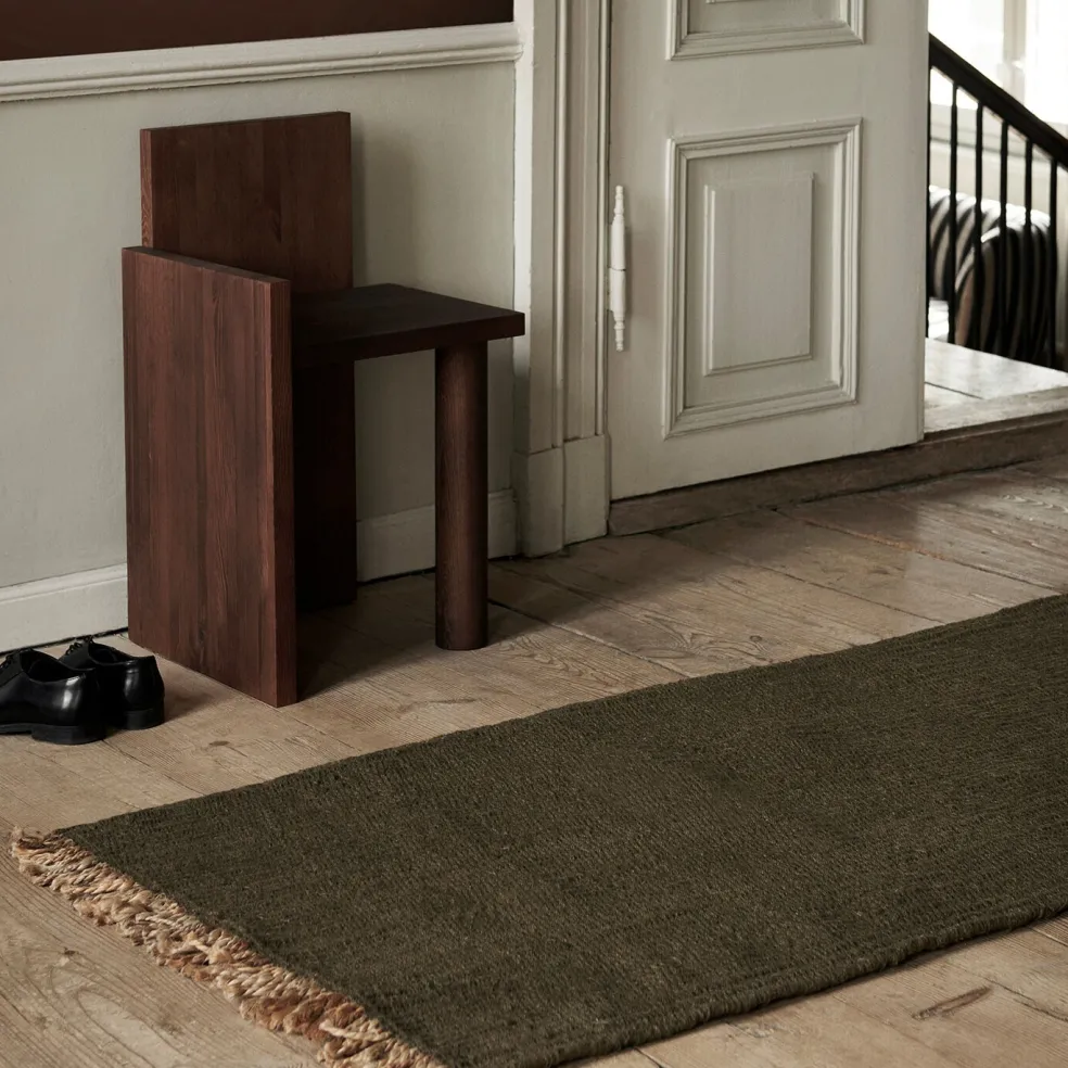 Der Block Teppichläufer 200x80cm wurde für die Marke Ferm Living entworfen. Das Modell beweist, wie stilvoll nachhaltige Dekorationsobjekte sein können. Es wird nämlich zu 50 Prozent aus recyceltem Kunststoff hergestellt. Dafür wird in einer ausgeklügelten Technik PET-Garn produziert: Für jeden Teppichläufer werden 132 Plastikflaschen zu einem neuen Material verarbeitet. Die Designer kombinieren es zu 50 Prozent mit dem Naturmaterial Jute.
