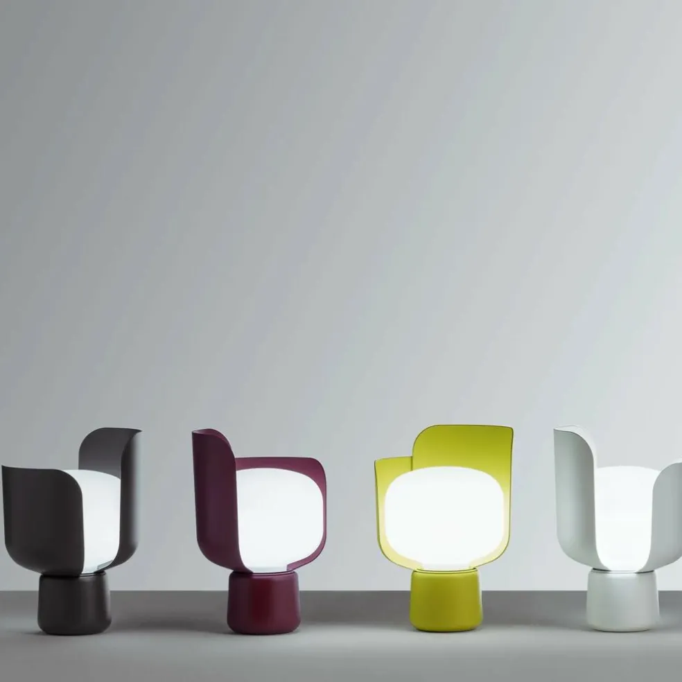 Der Diffusor der Blom Tischleuchte ist aus opalweißem Polyethylen gefertigt, die Blütenblätter bestehen aus Polycarbonat. Festen Stand garantiert ein kleiner Sockel aus lackiertem Aluminium. Erhältlich ist die Blom Tischleuchte von FontanaArte in vier verschiedenen Ausführungen, bitte beachten Sie hierzu die Blom „Produktvarianten“.