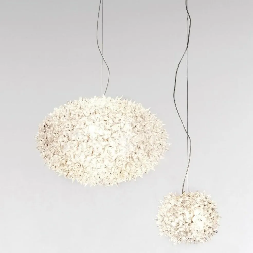 Die Bloom S2 Pendelleuchte wurde von Ferruccio Laviani für Kartell enworfen. Sie gehört zu einer außergewöhnlichen Serie, die auch Wandleuten und Pendelleuchten in anderen Größen umfasst.