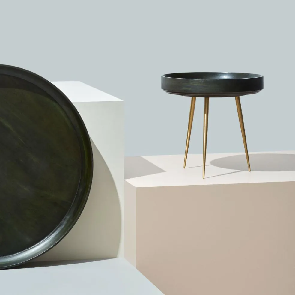 Der Bowl Beistelltisch S wurde von Ayush Kasliwal für die Marke Mater entworfen. Er ist Teil einer gleichnamigen Kollektion. Mit der Bezeichnung spielt der Designer auf die schalenartigen Tischplatten der Bowl-Tische an.