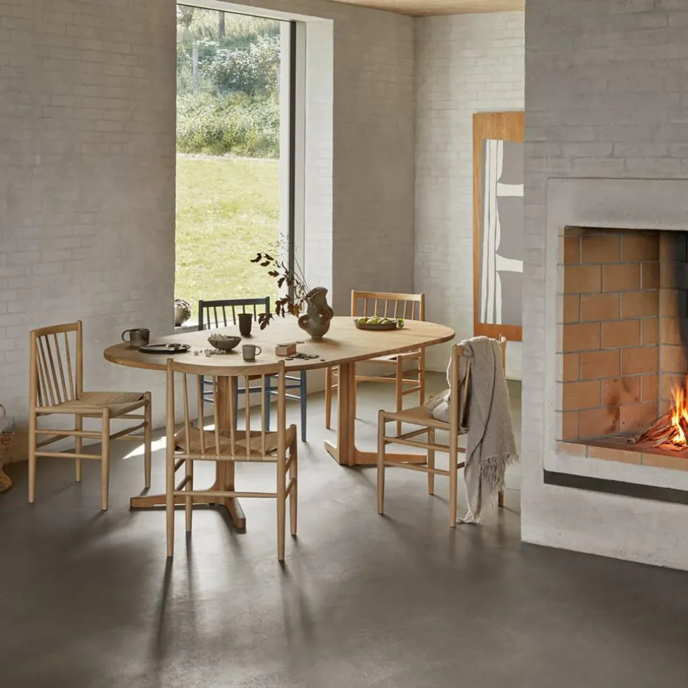 Der C69E Esstisch 220x120cm wurde von Nissen & Gehl für die Marke FDB Møbler entworfen. Die beiden Möbeldesigner kreierten mit dem C69E-Tisch einen in seiner Größe flexiblen Esstisch mit jeder Menge Platz für die ganze Familie.