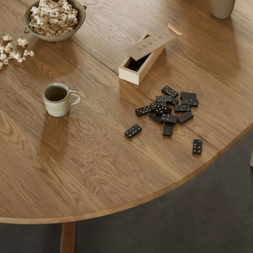 Beim C69E Esstisch 220x120cm handelt es sich um einen Massivholztisch aus geöltem Eichenholz. Das aus Litauen und der Ukraine stammende Holz ist FSC®-zertifiziert. Sein puristisches Design ist typisch für die skandinavische Formsprache. Der C69E Esstisch 220x120cm ist ein flexibler Begleiter im Esszimmer für die Familie und viele Gäste. In der Grundform ist er rund mit einem Durchmesser von 120cm. Das Besondere ist seine ausziehbare Konstruktion, die aus dem runden Tisch mit einer Beinsäule und einem Fußkreuz einen großen Tisch in ovaler Form mit zwei Beinsäulen und jeweils einem halben Fußkreuz macht.