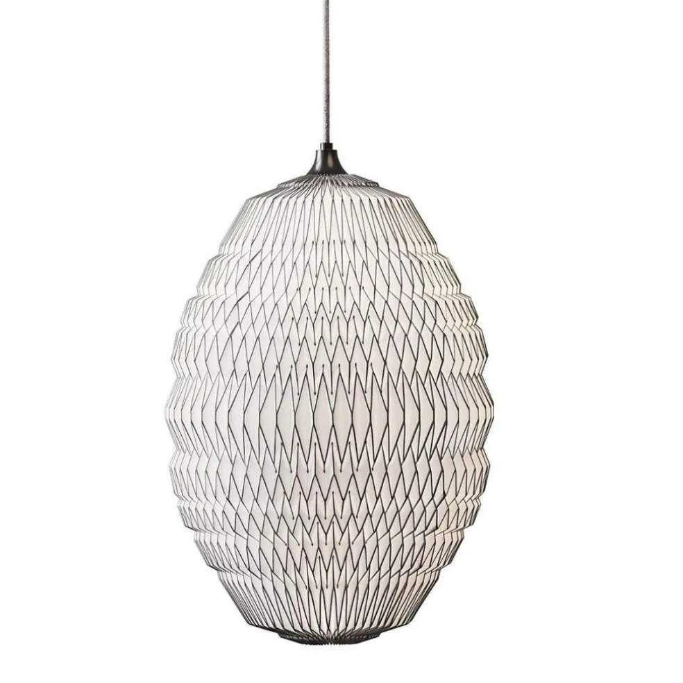 Wie ein Bienenkorb voller glänzender Waben hängt die Caleo 2 Pendelleuchte von der Decke. Das filigrane Design wirkt durch die verwendeten Materialien Kunststoff und Metall leicht und nahezu durchscheinend. Mit einer Höhe von 56 cm und einem Durchmesser von 36 cm bildet die Leuchte eine wohlproportionierte Skulptur, die sowohl als Solitär wie auch in Verbindung mit anderen Leuchten der Serie ihre Wirkung entfaltet.