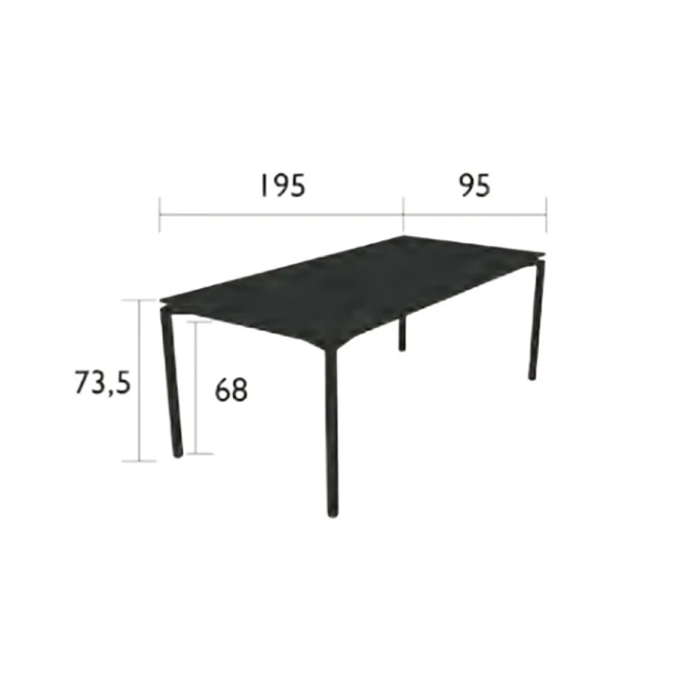 Für den Calvi Gartenesstisch 195x95cm verwendet Lesur pulverbeschichteten Stahl, ein Material, das sich für die Herstellung von Outdoor-Möbeln bewährt hat. Wird der Tisch einmal nass, kann er mit einem Tuch abgewischt und sofort wieder genutzt werden. Außerdem ist das Material UV-beständig, somit behält der Calvi Gartenesstisch 195x95cm für viele Jahre seine Farbe. Außergewöhnlich ist auch das Design: Die vier Füße verlaufen unterhalb der Tischplatte zu einem an den Ecken leicht abgeschrägten Gestell zusammen. So wirkt es, als ob die Platte nur locker auf den Kanten ruhen würde. Da am Calvi Gartenesstisch 195x95cm bis zu 10 Personen Platz finden, ist er optimal für größere Familien und Gartenbesitzer, die gerne Gäste einladen.