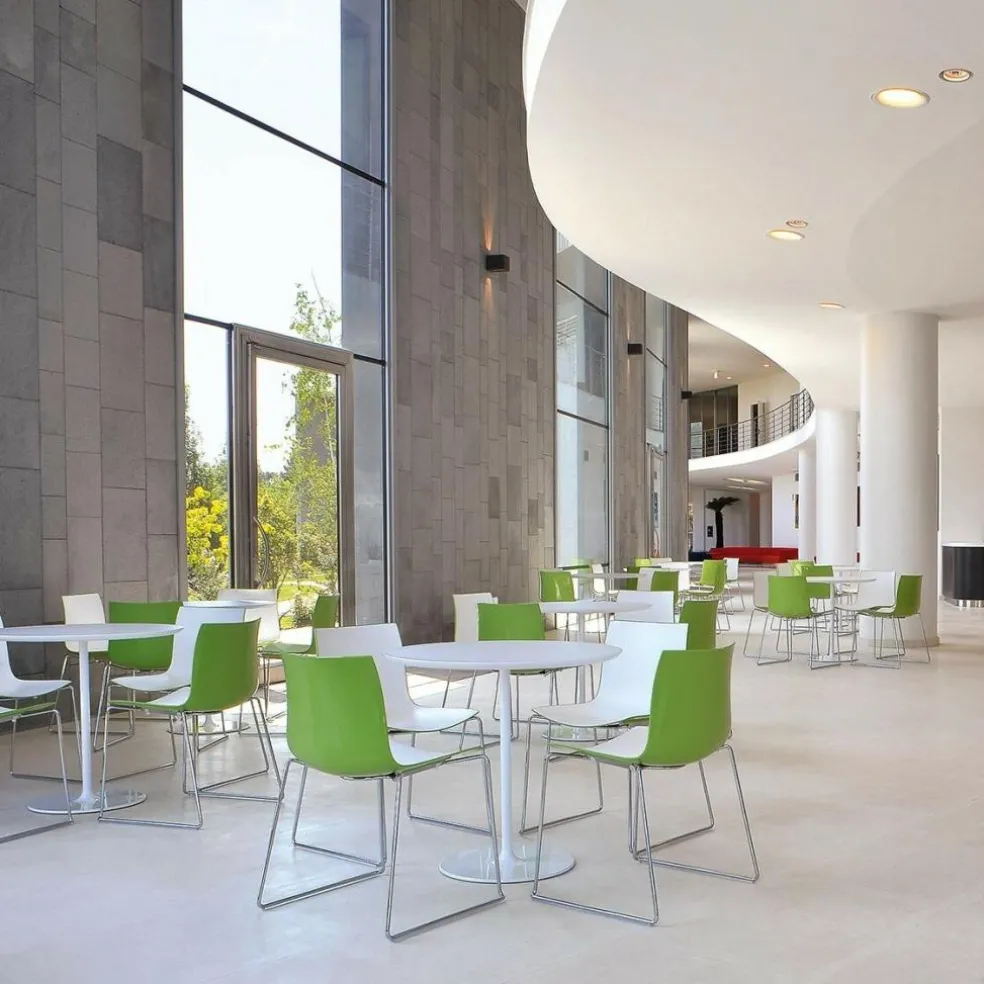 Catifa 46 0278 mit Kufe ist die neue Variante der bekannten Catifa-Form, die vom Designstudio Lievore, Altherr, Molina entworfen wurde. Catifa 46 ausgestattet mit einer nur 46 cm breiten Sitzfläche ist sowohl in einer Ausführung mit Kufengestell bei Stuhl und Hocker als auch mit vierbeinigem Gestell erhältlich. Alle Ausführungen sind stapelbar.