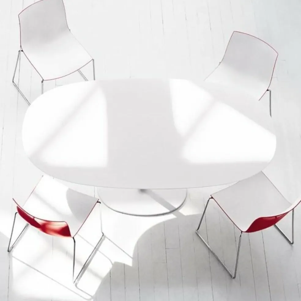 Das hier angebotene Modell hat Kufen aus Polyurethan und wird in zweifarbigen Polyropylen geliefert. Diese spezielle Technik betont die charakteristische, weiche und sinnliche Linie der Kollektion.