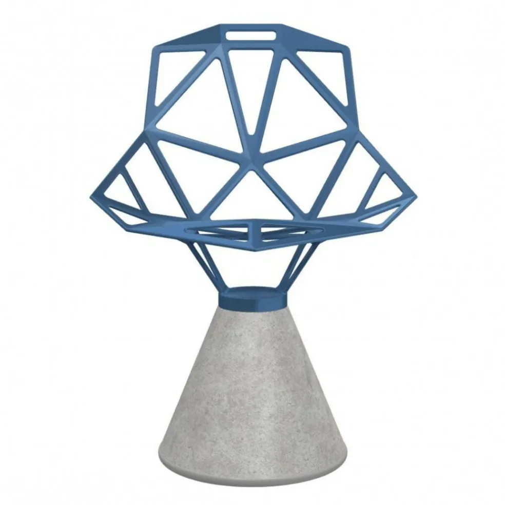 Für die Basis des Chair One Drehstuhls Zementfuß verwendet der deutsche Designer ein für den Wohnbereich außergewöhnliches Material: Sie besteht nämlich aus Zement und ist konisch geformt. Der massive Fuß ist der Grund, warum der Chair One Drehstuhl Zementfuß mit 34,5 kg ein beachtliches Gewicht aufweist. Der Sitz besteht aus Aluminium-Druckguss. Er verläuft in einem symmetrischen Muster, das aus Aluminiumstreben zusammengesetzt ist. Das Material ist mit fluoriertem Titan behandelt und mit Polyesterlack überzogen. Da sich die Sitzschale drehen lässt, kann die Sitzposition nach Belieben gewählt werden. Ein vierbeiniger Standfuß sichert die Stabilität.