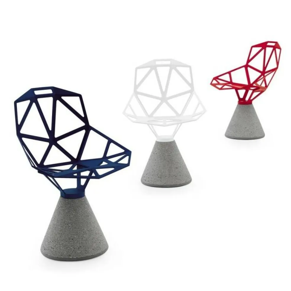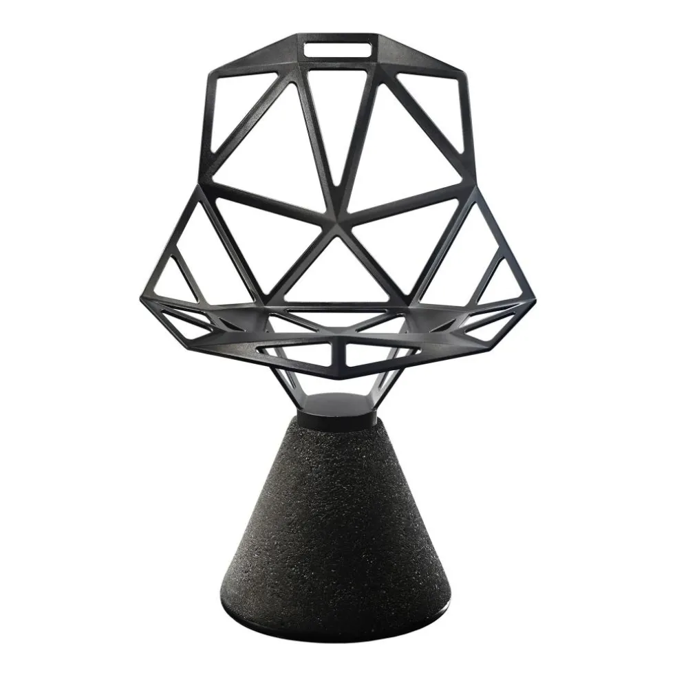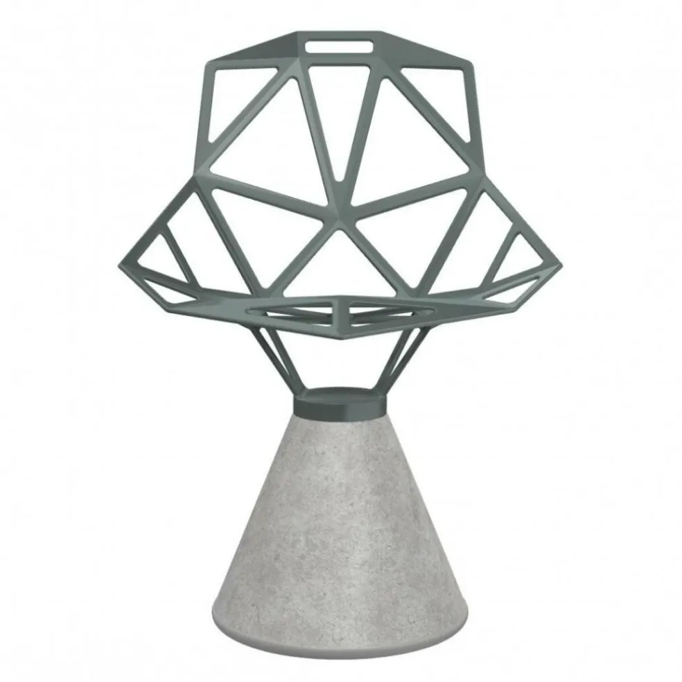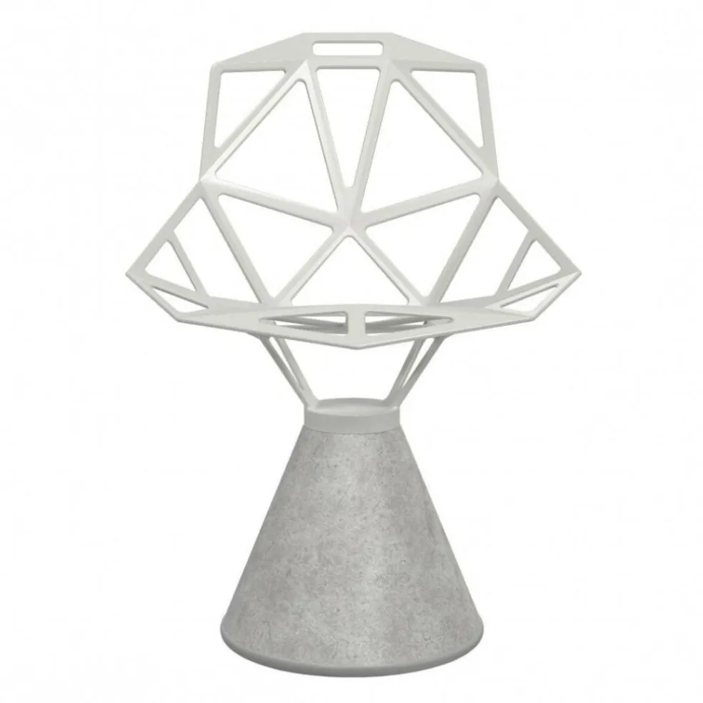 Der Chair One Stuhl Zementfuß eignet sich für den privaten Bereich, wobei er sich in zeitgenössische Einrichtung besonders gut einfügt. Er macht jedoch auch in Boutique-Hotels eine ausgezeichnete Figur. Gut sitzt man in dem Chair One Stuhl Zementfuß auch in einem Büro. Zum Markenzeichen des Chair One Stuhls Zementfuß wird der Standfuß aus Zement. Er hat eine konische Form und gewährleistet der Sitzgelegenheit festen Stand. Einen interessanten Kontrast zu dem nüchternen Baumaterial bildet die Sitzschale aus Aluminium. Sie wird in einem speziellen Druckgussverfahren geformt. Zusammengesetzt ist die Sitzschale aus geraden Streben, die ein geometrisches Muster bilden. Fast erinnert es an einen Fußball. Der feuerbeständige Chair One Stuhl Zementfuß kann auch für den Außenbereich verwendet werden.