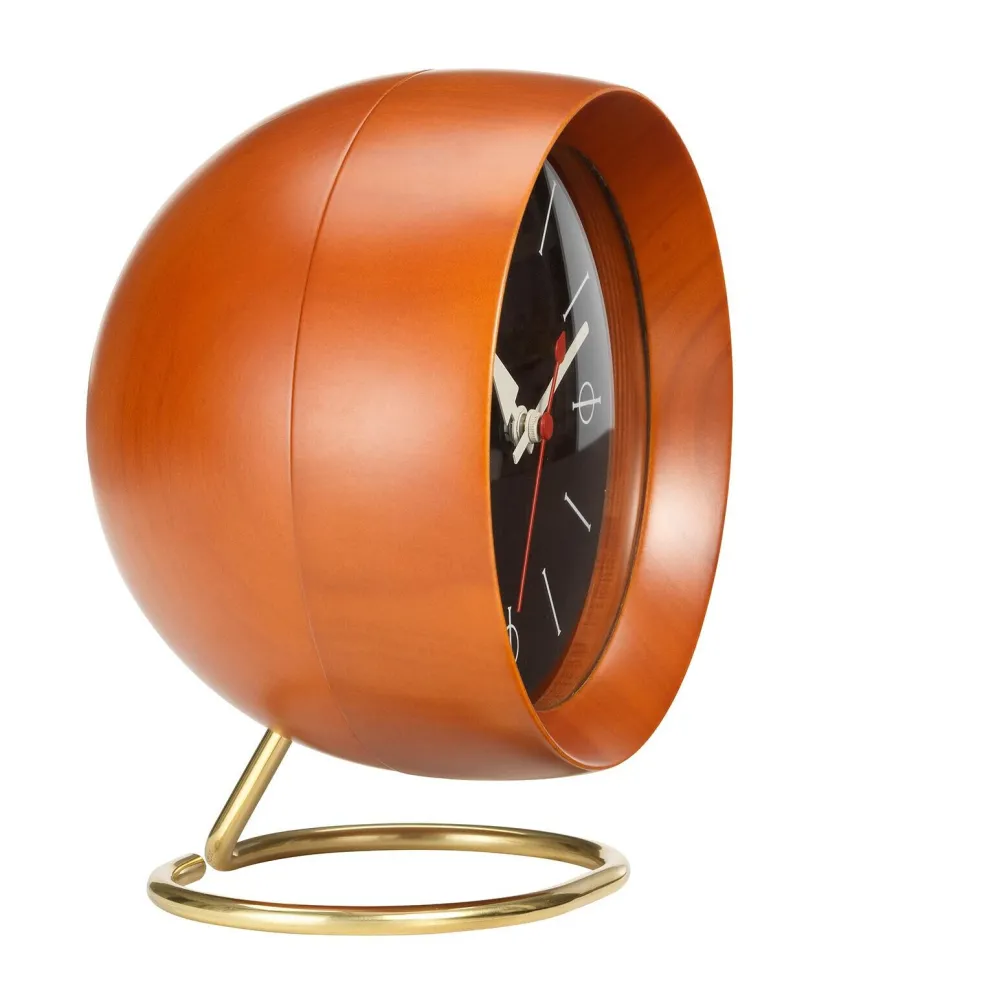 Wie ein Schmuckstück aus vergangenen Tagen wirkt die Chronopak Nelson Tischuhr der Marke Vitra: Mit ihrer Form und den hochwertigen Materialien Metall und Nussbaum strahlt sie nicht nur einen unwiderstehlichen Retro-Charme aus, sondern zeugt auch von einem untrüglichen Gespür für Qualität. Das Ziffernblatt ist in das kugelförmige Gehäuse eingefasst und besticht durch seinen Minimalismus.