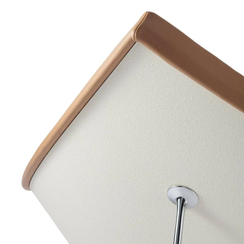 Eine formschöne Schale aus glasfaserverstärktem Kunststoff bildet den Sitz dieses auffälligen Designsessels. Deren Innenseite ist mit einem einteiligen Polster aus hochwertigem Polyurethanschaum ausgelegt und wahlweise mit robustem Stoff oder edlem Leder bezogen. Damit wirkt der Coconut Chair Nelson Sessel wie eine Aufforderung, sich gemütlich hinzusetzen. Ein filigranes Gestänge aus glanzverchromtem Stahlrohr bildet dabei den zurückhaltenden, aber stabilen Unterbau. Die drei ausgestellten Beine garantieren eine hohe Belastbarkeit. Mit Filzgleitern versehen, bieten sie auf harten Böden einen stabilen Halt. So eignet sich der Coconut Chair Nelson Sessel ebenso für öffentliche Gebäude wie für den privaten Wohnraum. Als Einzelstück passt das bequeme Sitzmöbel ins Wohnzimmer oder in eine gemütliche Leseecke. Zusammen mit weiteren Coconut-Chair-Modellen bildet er in einer Lounge, im Vorzimmer einer Agentur oder im Wartebereich einer Praxis ein formschönes Ensemble.