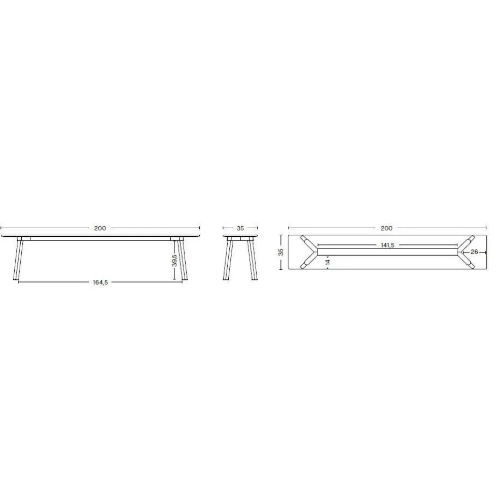 Die Copenhague CPH Deux 215 2.0 Bank 200cm bietet auf ihrer Länge von 200cm bequem Platz für zwei bis drei Personen, die es sich auf der Breite von 35cm gemütlich machen können. Die Sitzhöhe von 45cm erlaubt die Nutzung mit jedem beliebigen Tisch. Die 22kg schwere Sitzbank besitzt vier Füße aus Massivholz, die leicht nach außen geneigt sind und dadurch eine erhöhte Stabilität bieten. Die hinteren Beine sind rechteckig geformt, während die vorderen einen runden Querschnitt aufweisen.