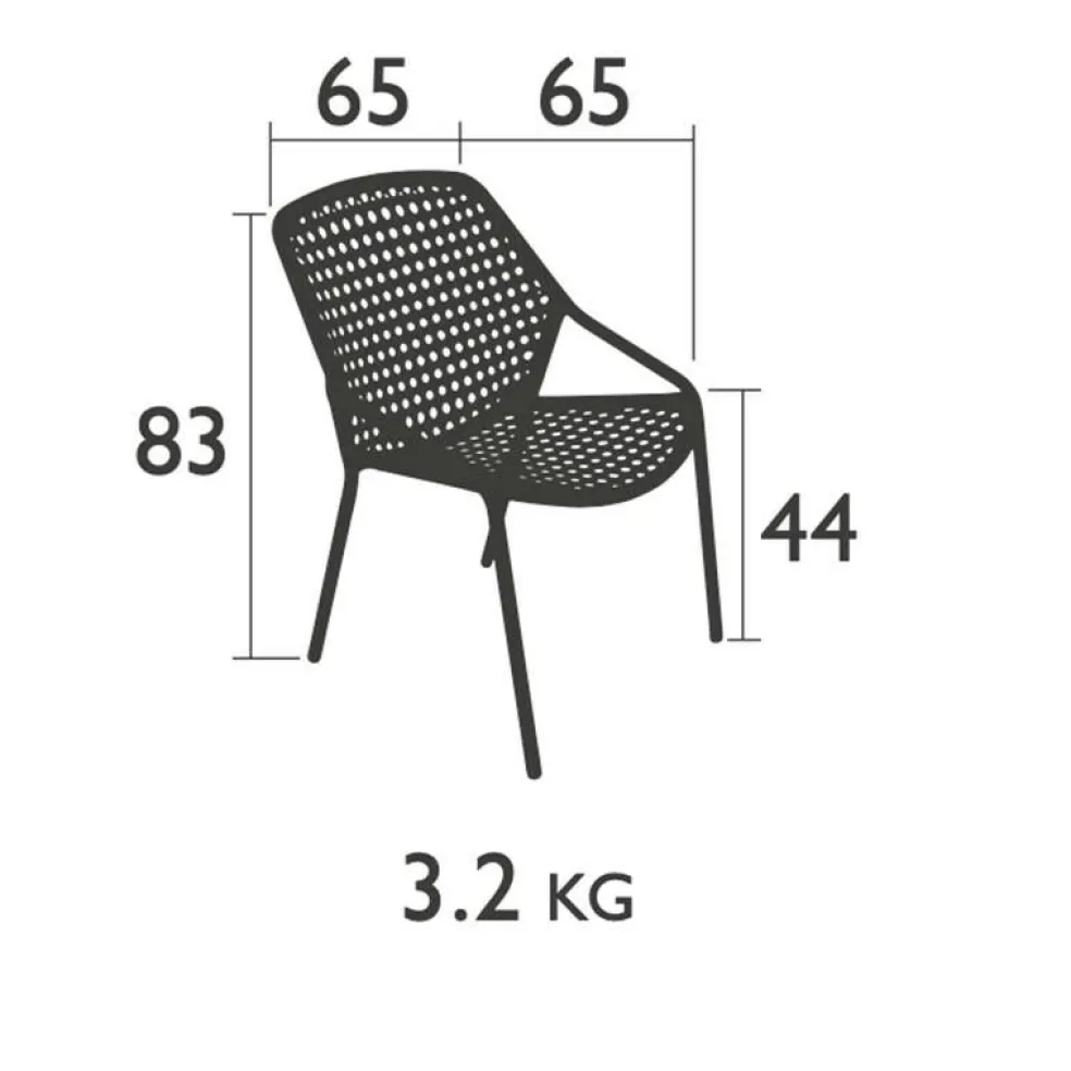 Mit 65 x 83 x 65 cm ist der Croisette Gartensessel im „Midi-Design“ für Jung und Alt nutzbar und bietet großzügigen und gemütlichen Platz zum Entspannen. Die Höhe sowie die Neigung der Lehne lassen das Sitzen zum puren Vergnügen werden und laden zum Verweilen ein. Die geflochtene Bespannung sorgt für besonderen Komfort und Beweglichkeit und sorgt dafür, dass dieser Gartenstuhl zu einem grazilen Blickfang in Ihrem Garten wird. Für die hohe Widerstandsfähigkeit sind die robusten Outdoor-Fasern verantwortlich, welche Wind und Wetter sowie UV-Strahlen trotzen und mit ultrahochwirksamer Schutzbehandlung ausgestattet sind.