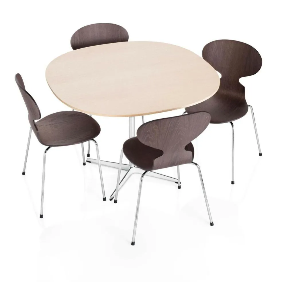 Der hier gezeigte Ant Chair Stuhl mit einer Sitzhöhe von 46,cm besteht aus vier verchromten Beinen und schichtverleimtem, formgepresstem Maserfurnier in verschiedenen Holzausführungen, siehe „Produktvarianten“. Auf Anfrage gibt es den Ant Chair Stuhl auch als 3-beinigen Stuhl. Zögern Sie nicht, uns anzurufen, wir beraten Sie gerne!