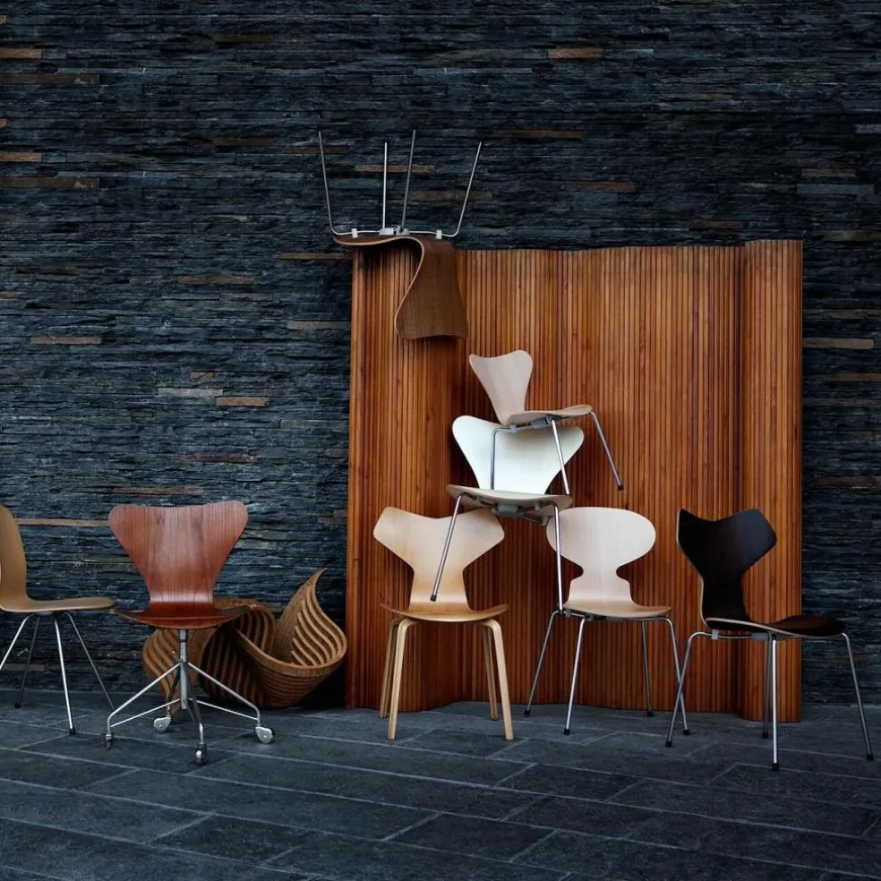 Ein spezielles Verfahren bei der Verleimung des Maserfurnierholzes macht den Ant Chair Stuhl äußerst stabil und zugleich sehr flexibel – deshalb ist der Ant Chair Stuhl außerordentlich bequem und lädt zum Verweilen ein.