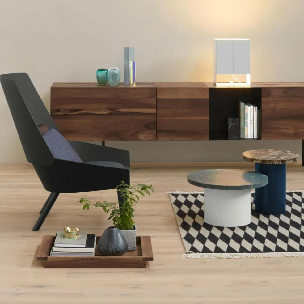 Der EC03 Eugene Sessel ist in seiner Gestalt absolut einzigartig. Wie ein gefaltetes Blatt erscheint der Stuhl des Herstellers e15. Maßgeblich verantwortlich für diese Wirkung ist das sehr dicht gepresste Eichenfurnier, das trotz der extrem dünnen Elemente sehr robust ist. Gefördert wird dieser Auftritt durch die schmalen Beine. Optisch wurde der EC03 Eugene Sessel von e15 zwischen Rückenlehne und Sitzschale unterbrochen. Dies erzeugt eine besondere Leichtigkeit. Mit angedeuteten Armlehnen, hoher Lehne und einer Sitzhöhe von 35cm bietet der Sessel idealen Sitzkomfort. Die moderne Gestalt mit lackierter Oberfläche passt sich gekonnt in jeden modernen Einrichtungsstil ein. Dabei bildet die natürliche Maserung einen harmonischen Gegenpol zur klaren Formsprache des Sessels. Bitte beachten Sie bei der Auswahl auch auf unsere „Produktvarianten“.