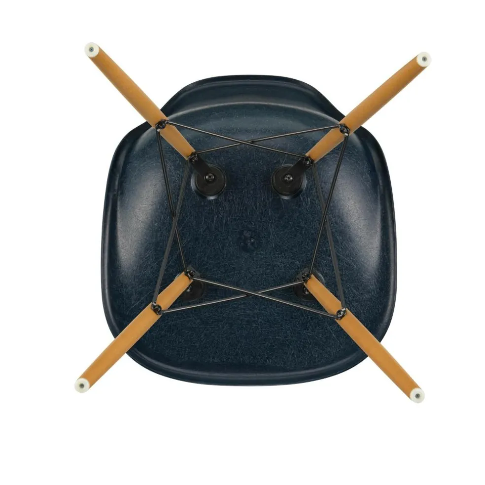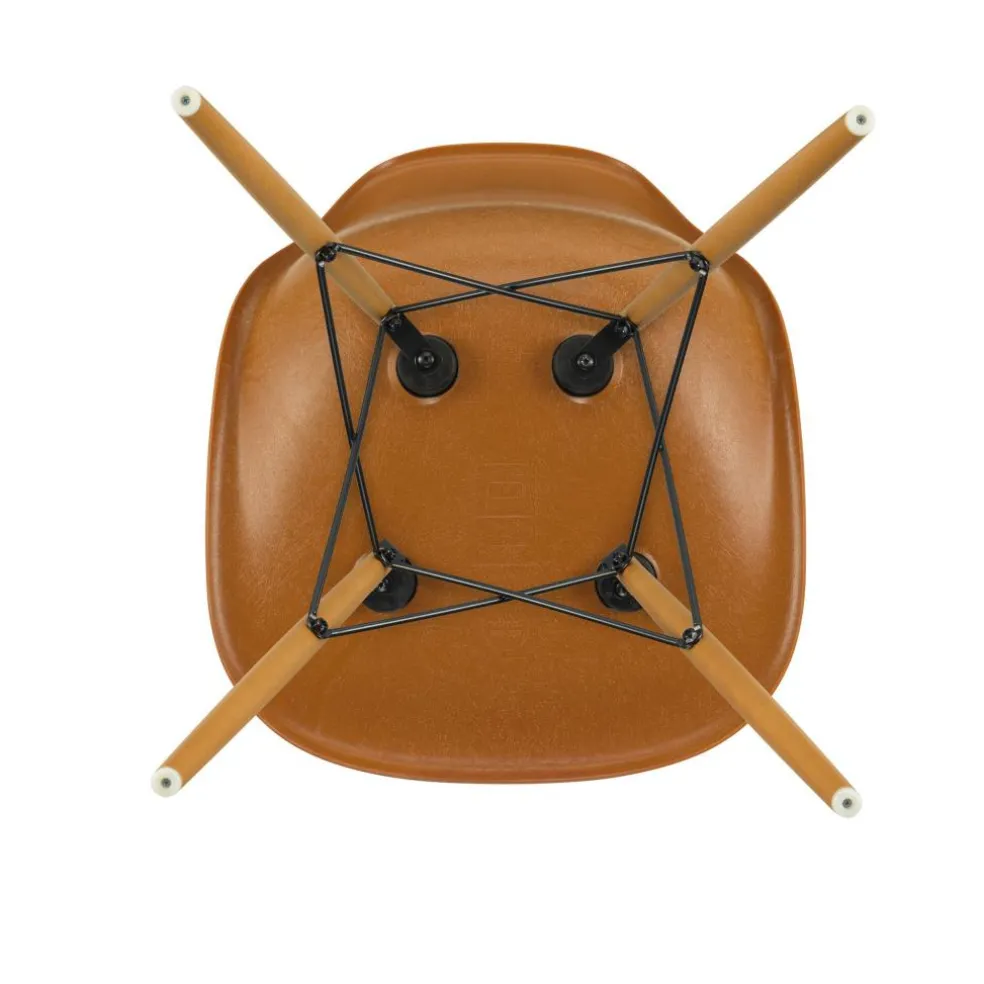 Für den aktuellen Eames Fiberglass Side Chair DSW Ahorn gelb wählte das amerikanische Designer-Ehepaar Charles und Ray Eames ein vierbeiniges Untergestell aus massivem Ahornholz mit einer eher dunklen, leicht ins gelbliche tendierenden Farbgebung. Das Holz stammt von Ahornbäumen Acer platanoides aus kontrollierter Forstwirtschaft in Europa. Die Sitzschale besteht aus durchgefärbtem und glasfaserverstärktem Polyester und ist mit Beschlägen aus schwarzem Stahl am Untergestellt fixiert.