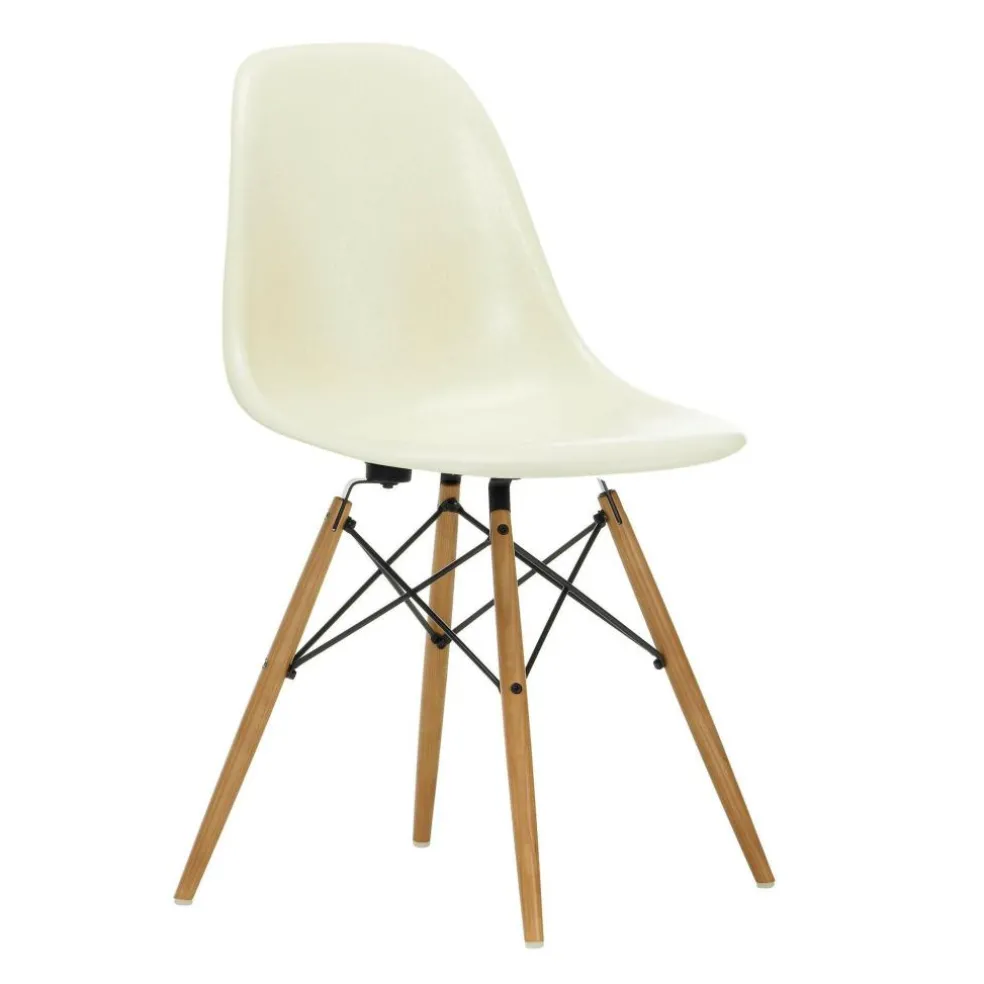 Der klassisch-elegante Eames Fiberglass Side Chair DSW Gestell Esche wurde von Ray und Charles Eames für den Hersteller Vitra entworfen. Entstehen sollte ein robustes und funktionales Sitzmöbel, das neben seiner Haltbarkeit auch durch Form und Haptik begeistert.