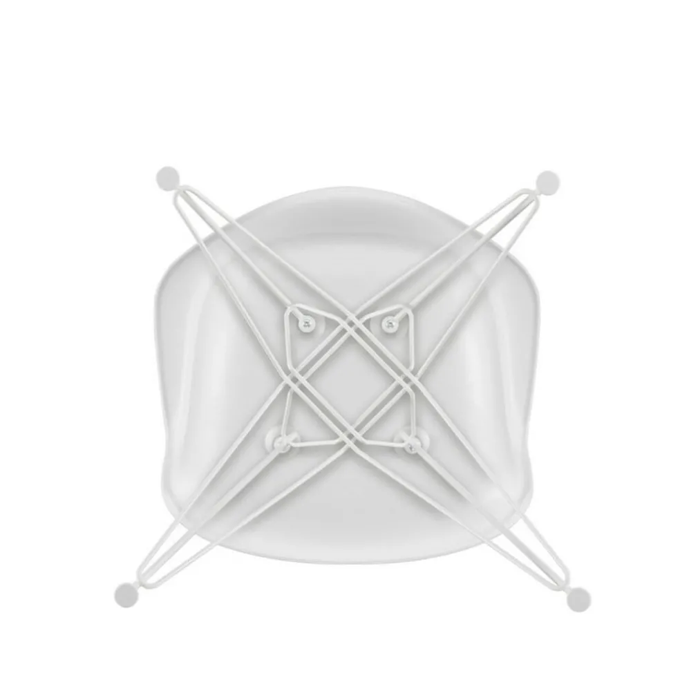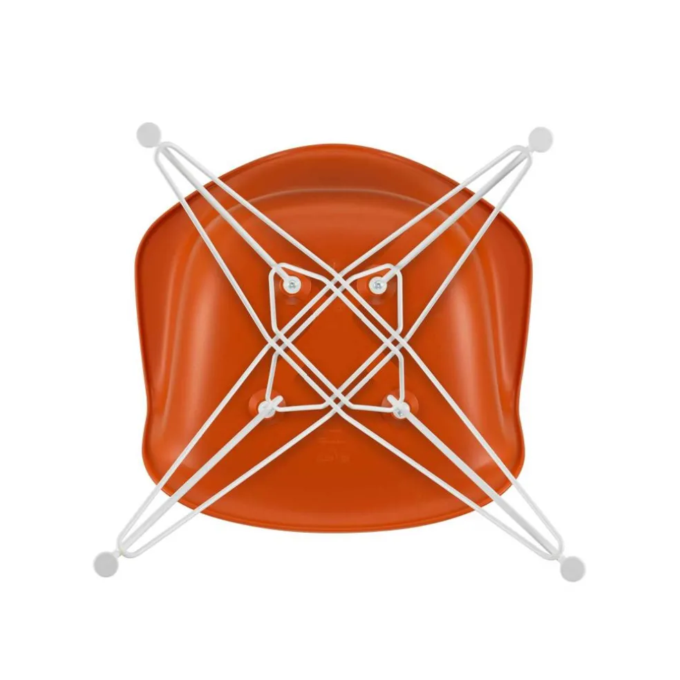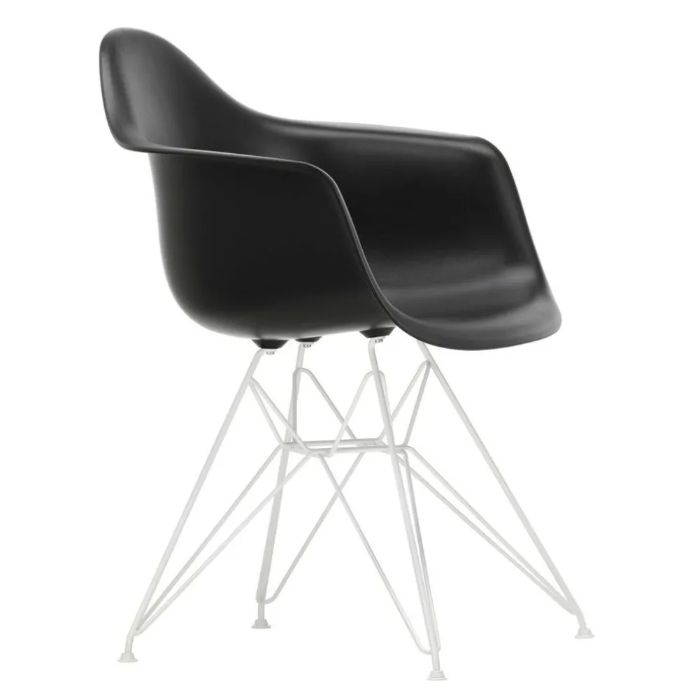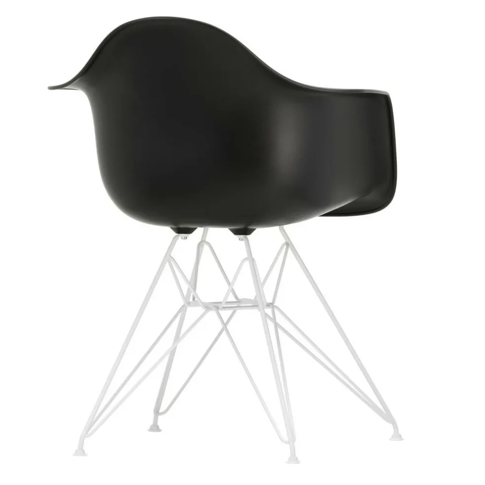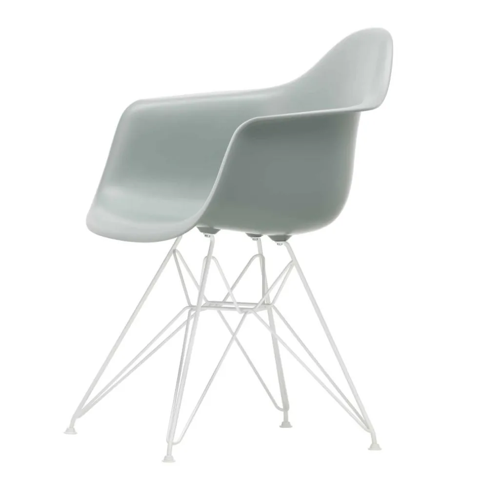 Mit seinem hochwertigen Kunststoffsitz und dem an die Konstruktion des Eiffelturms erinnernden Gestell ist der Eames Plastic Armchair DAR RE Gestell weiß ein attraktiver Hingucker in jedem modernen Interieur. Die Schale mit ihrer großzügigen Form, der hoch geschwungenen Rücken und die breiten Auflageflächen der Armlehnen versprechen einen bequemen Sitzkomfort, während der filigrane Unterbau aus robustem, pulverbeschichtetem Stahldraht dem Designstück einen leichten Touch verleiht. Die Oberfläche des Sitzes aus recyceltem Kunststoff kann aufgrund der Materialzusammensetzung reizvolle Farbsprenkel aufweisen. Der Eames Plastic Armchair DAR RE Gestell weiß passt auf die Terrasse oder ins Wohnzimmer und eignet sich für eine Bar, ein Designhotel oder den Wartebereich einer Praxis.