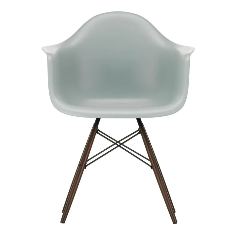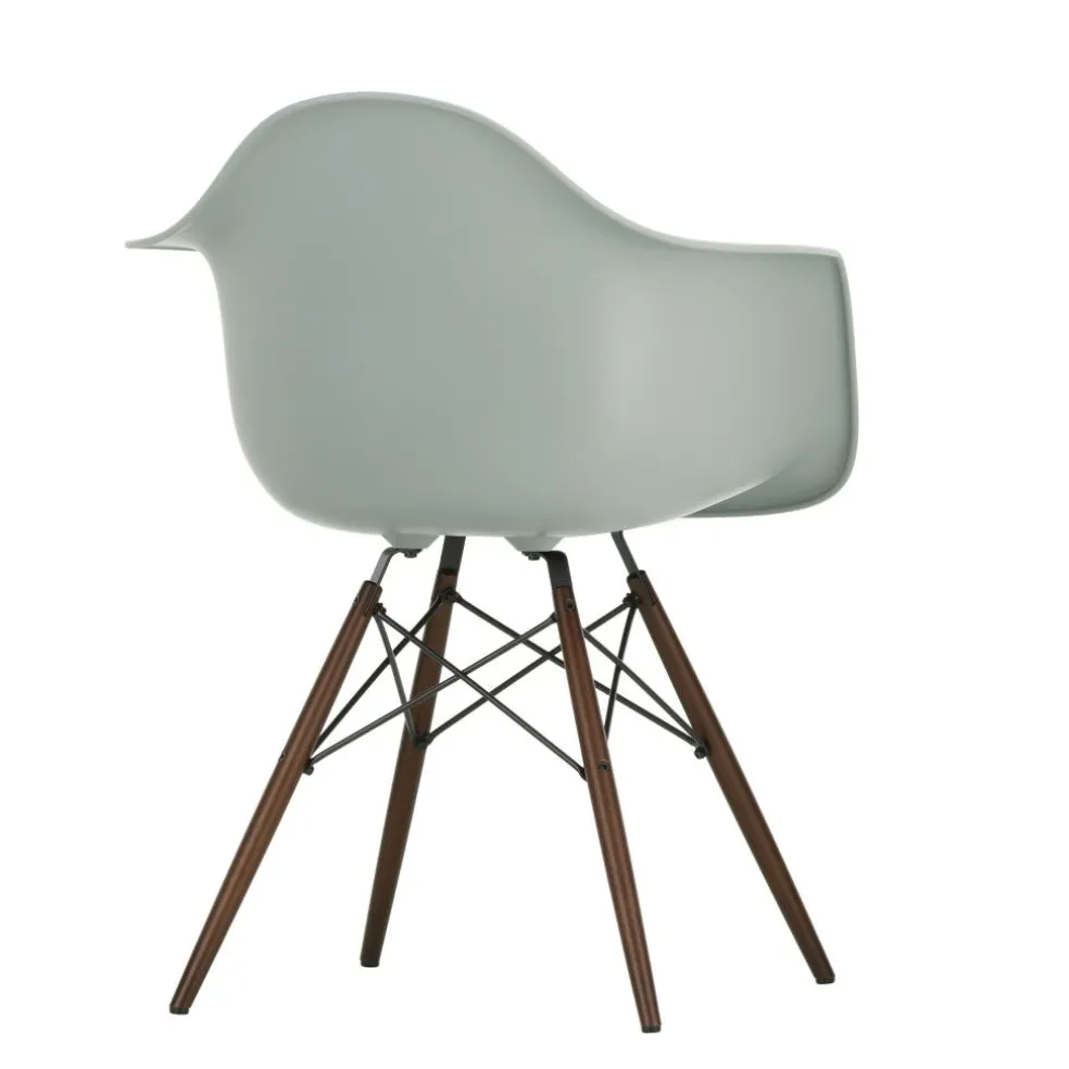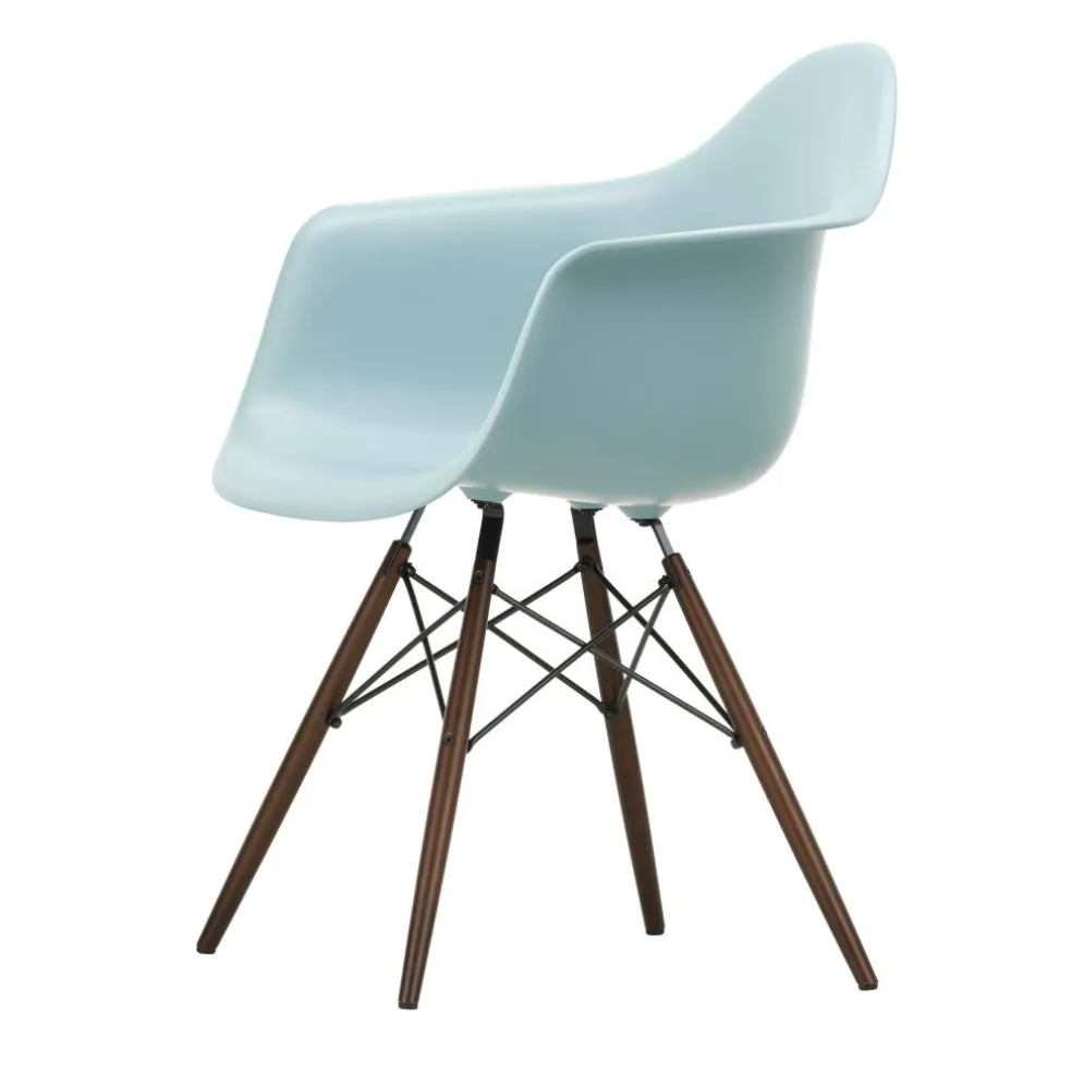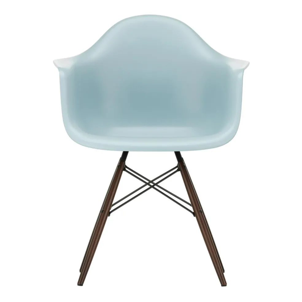 Der Eames Plastic Armchair DAW RE Ahorn dunkel wurde von Ray und Charles Eames für die Marke Vitra entworfen. Er ist Teil einer Serie von Stühlen, die ikonische Designs aus 1950 verwenden und Sitzschalen aus Kunststoff mit verschiedenen Untergestellen kombinieren. Das DAW-Modell beeindruckt mit einer Basis aus Holz. Mit ihrer nachhaltigen Materialwahl präsentieren sich die Eames-Plastic-Armchairs zeitgemäß.