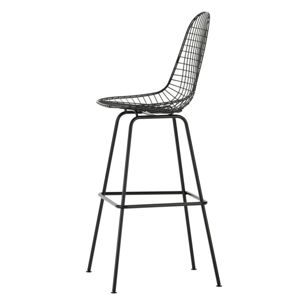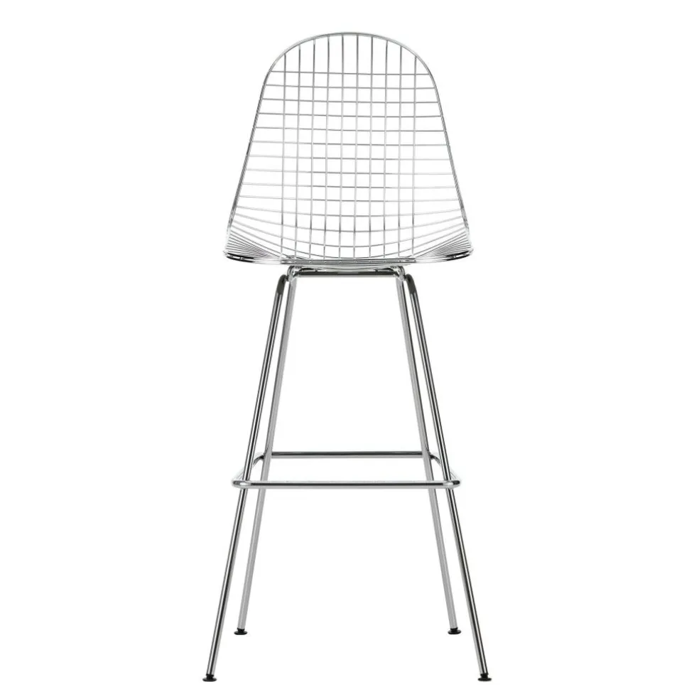 Der Eames Wire Barstuhl hoch wurde von Ray und Charles Eames für die Marke Vitra entworfen. Er ist Teil einer Kollektion, die 1951 kreiert wurde und das Konzept des organisch geformten Schalensitzes mit verschweißtem Stahldraht variiert. Damit beeindrucken die Eames-Wire-Modelle mit ihrer Transparenz.