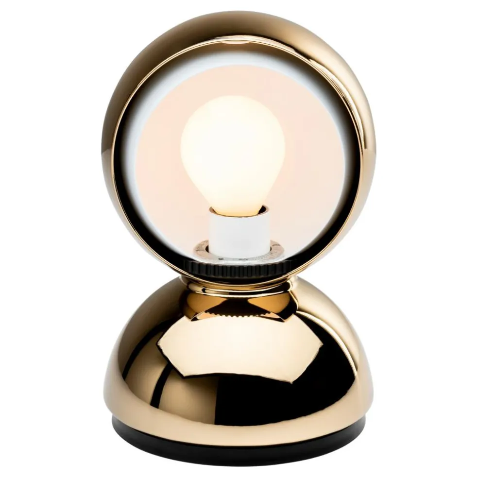Die Eclisse PVD Tischleuchte wurde von Vico Magistretti für die Marke Artemide entworfen. Vorgestellt wurde das außergewöhnliche Modell 1967. Zwei Jahre später erhielt es den begehrten Preis Compasso d’Oro. Seitdem gilt es als Ikone italienischen Designs.