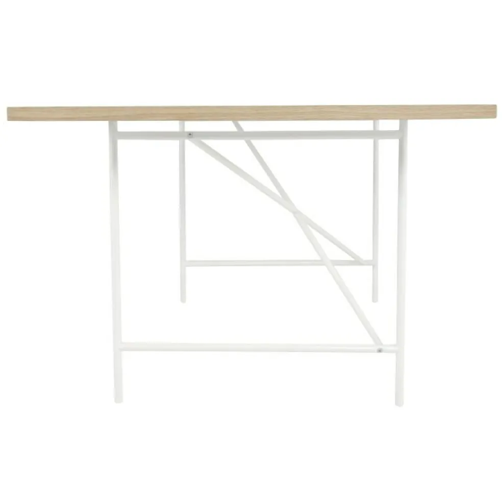 Zusammengesetzt aus einer melaminbeschichteten Spanplatte und einem Gestell aus Stahlrohrstangen beeindruckt der Eiermann 1 Tisch 180x90cm Gestell exzentrisch mit seinem minimalistischen Design. Die außermittige Konstruktion bietet maximale Beinfreiheit und ermöglicht ein zurückgelehntes Sitzen mit ausgestreckten Beinen. Gleichzeitig garantieren die gekreuzten Verstrebungen eine hohe Belastbarkeit. Der Designtisch lässt sich mit weiteren Eiermann-Modellen zu einem großzügigen Coworking Space kombinieren. Damit passt er ins Arbeitszimmer daheim und in ein großräumiges Kreativbüro. Mit seiner hochwertigen Eichenkante und dem wahlweise verchromten oder lackierten Gestell lässt sich der Eiermann 1 Tisch 180x90cm Gestell exzentrisch zudem harmonisch an seine Umgebung anpassen.