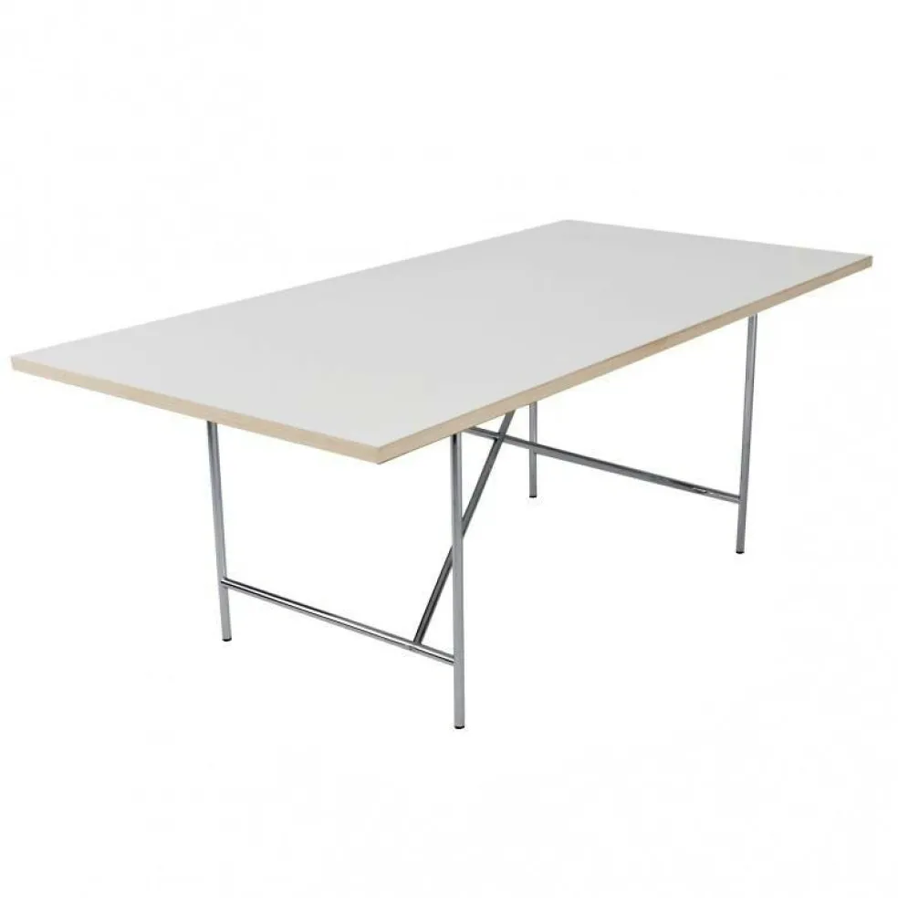 Der Eiermann 1 Tisch 90x200cm Gestell mittig ist 72 cm hoch und lässt sich damit mit beliebigen Sitzgelegenheiten kombinieren. Er harmoniert besonders gut mit dem modernen, minimalistischen Stil. Die Tischplatte des Eiermann 1 Tisch 90x200cm Gestell mittig bildet eine Ablagefläche mit 200 cm in der Breite und 90 cm in der Tiefe. Das Modell ist perfekt als Arbeitstisch geeignet, macht jedoch auch im Esszimmer eine gute Figur.