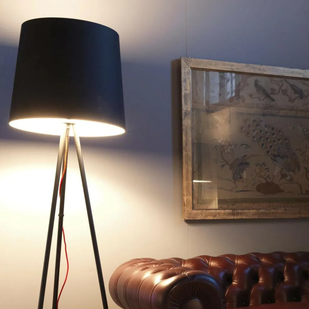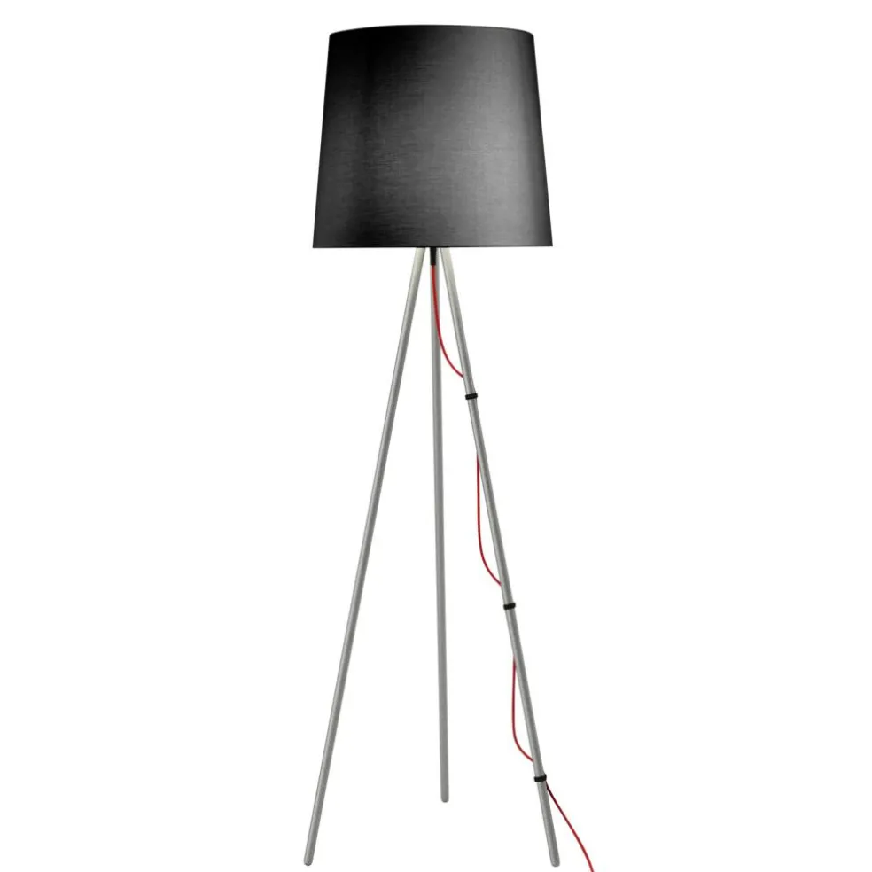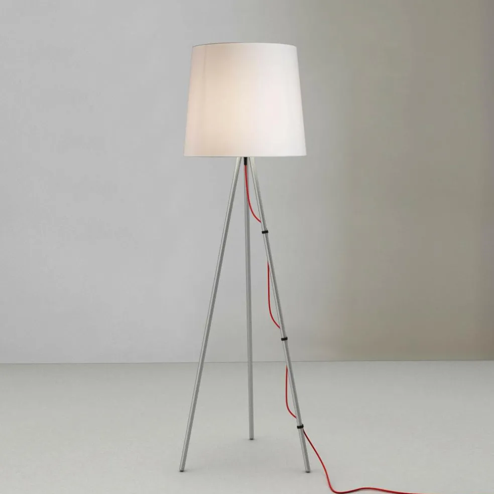 Die Eva Stehleuchte Aluminiumgestell wurde in der klassischen Form einer dreibeinigen Stehleuchte entworfen. Das Gestell aus satiniertem Aluminium garantiert sicheren Stand. Einen interessanten Kontrast zu dem filigranen Fuß stellt der zylinderförmige Leuchtenschirm dar. Er besteht aus edlem Stoff. Innen ist der Schirm weiß gefärbt, um eine bessere Reflexion des Lichtstrahls zu ermöglichen. Er dringt nach unten und oben aus dem Leuchtenschirm aus. Kaum wird die Eva Stehleuchte Aluminiumgestell eingeschaltet, erstrahlt auch der Schirm in sanftem Schimmer da der Stoff leicht durchsichtig ist. Zum Blickfang wird das rote Stromkabel, das 250 cm lang ist. Es ist mit Klemmen am Standfuß befestigt. Im freiliegenden Teil des Kabels sind der Dimmer und Schalter integriert. Die Leuchte verbreitet im Wohnzimmer, im Wintergarten, in der Hotellobby und an jedem anderen Ort wohnliche Atmosphäre.