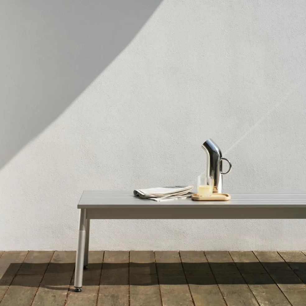 Die Ex Gartenbank 173x42cm von Normann Copenhagen ist ein Ausdruck moderner Zurückhaltung und technischer Raffinesse. Entworfen von Simon Legald, vereint sie klare Linien mit präziser Materialverarbeitung und schafft damit eine Form, die zeitgemäß wirkt, aber dennoch über Trends hinaus Bestand hat.