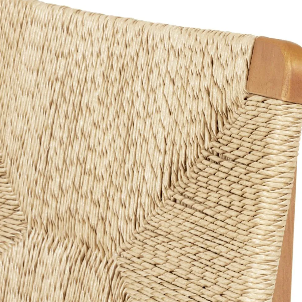 Der F-Chair Outdoor Lounge Chair wird im Garten, auf dem Balkon oder auf der Terrasse zu dem Ort, wohin man sich mit Freunden und der Familie zur Entspannung zurückzieht. Er ist auf maximalen Komfort ausgerichtet: Die beiden Armlehnen und die breite Rückenlehne unterstützen den Körper in jeder Position. Auffallend ist, dass die Vorderbeine gerade und die Hinterbeine schräg gestaltet sind. Das Gestell besteht aus Teakholz, einem Material, dass sich für den Outdoorbereich bestens eignet. Dafür sorgt der hohe Ölgehalt. Das lebendige Naturmaterial erhält eine natürliche Patina, wenn man die Oberfläche nicht regelmäßig mit einem speziellen Öl behandelt. Für die Sitzfläche und die Rückenlehne des F-Chair Outdoor Lounge Chairs verwendet der Designer eine Faser, die aus Polyethylen gefertigt ist. Sie ist zu einem schönen Muster verwoben. Das Material trocknet nach einem Regenguss schnell ab. Zur Schonung empfindlicher Oberflächen sind an den Beinen Edelstahlbeschläge mit Gleitern aus Kunststoff angebracht.