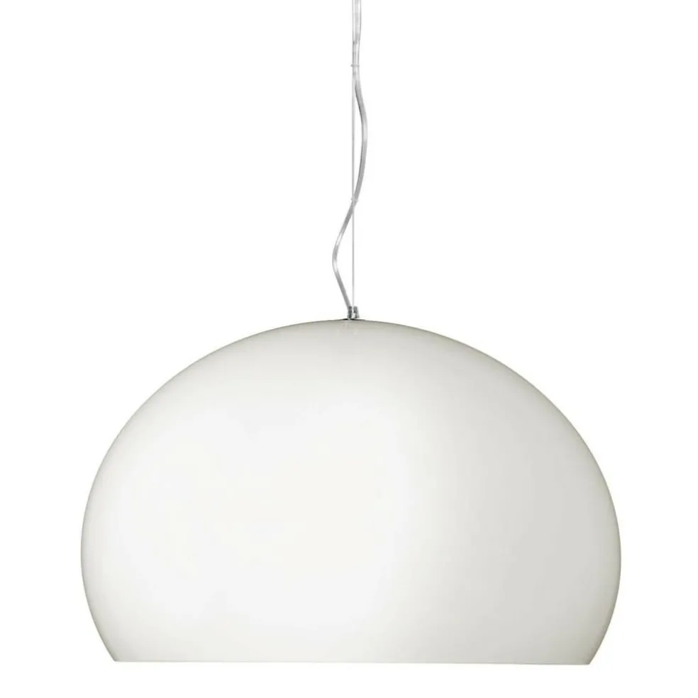 Die klassische FL/Y LED-Pendelleuchte matt wurde von Designer Ferruccio Laviani für den Hersteller Kartell entworfen. Laviani formt den Lampenschirm hier nicht perfekt halbkugelförmig. Er verlegt den Schnitt ein wenig unter den Durchmesser und bündelt auf diese Weise das Licht. Die pointierte Beleuchtung garantiert Ihnen vielfältige Einsatzmöglichkeiten.