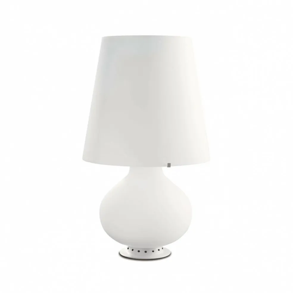 Die Fontana Tischleuchte S ist einzigartig: Sowohl im Sockel als auch im Leuchtenschirm sind Leuchtmittel verteilt. Betätigt man den Schalter, der im Kabel integriert ist, erstrahlen beide Elemente in sphärischem Licht. Man kann aber auch nur die Leuchtmittel in der Basis oder im Schirm einschalten. Der Rahmen des Leuchtenschirms wird aus lackiertem Metall gemacht. Für den Diffusor und die Basis verwendet der Designer mundgeblasenes, opales Muranoglas. Sie lassen blendfreies Licht in alle Richtungen durch. Der Sockel hat eine harmonische bauchige Form und der Schirm ist klassisch konisch geformt. Für die Fontana Tischleuchte S gibt es viele Einsatzmöglichkeiten: Sie macht auf dem Arbeitsplatz eine ebenso gute Figur wie auf einem Regal oder Fensterbrett.