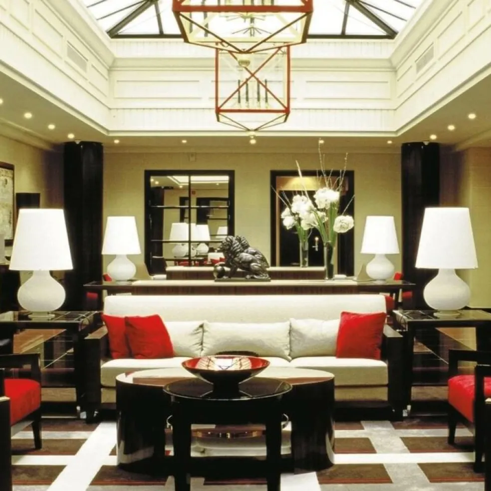 Die Fontana Small Tischleuchte benötigt ein Leuchtmittel mit E27-Fassung und zwei Leuchtmittel mit G9-Fassung. Das Modell ist 34cm hoch und der Durchmesser des Schirms beträgt 20cm. Es gibt aus derselben Kollektion auch eine größere Version. Unter Zubehör kann man einen passenden Ersatzschirm bestellen.