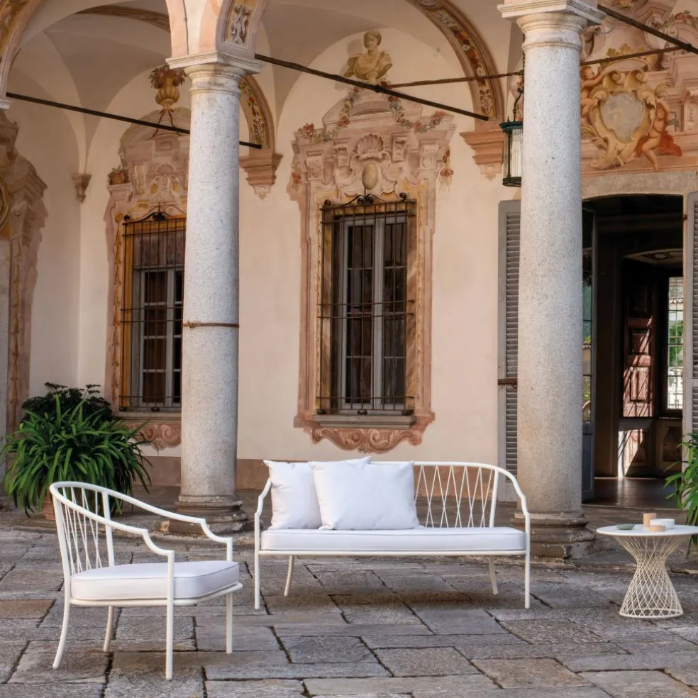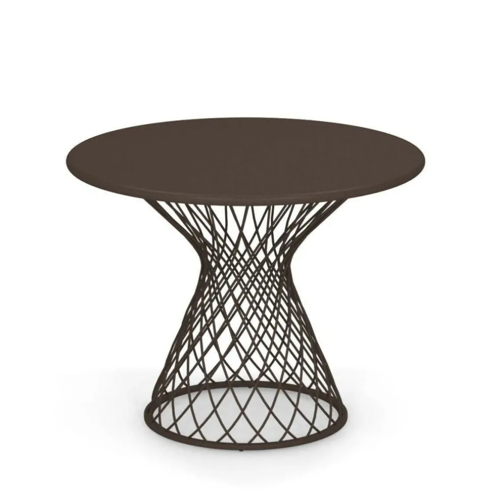 Der Heaven Garten-Beistelltisch Stahl Ø60cm begeistert durch seine Eleganz und optische Leichtigkeit. Die Tischplatte scheint beinah schwerelos auf einem dünnen Stahlgewebe zu schweben. Das Untergestell des Beistelltisches ist als Zylinder geformt, dessen Taille sich stark verjüngt. Dadurch erhält das filigrane Geflecht seine außerordentliche Stabilität. Der Tisch fügt sich durch seine transparente Silhouette harmonisch in jede Umgebung ein. In Gärten und auf Terrassen lässt das durchsichtige Untergestell den Blick auf Blumen und Pflanzen frei.