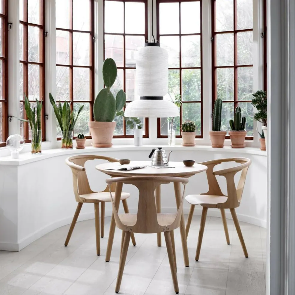 Je nach Modell besteht der Stuhl aus hochwertigem Eschen- oder Eichenholz. Bei der Farbauswahl wurden dezente Nuancen bevorzugt. Der Stuhl hat die Sitzfläche auf 45 cm, ist 77 cm hoch und 58 cm breit. Mit einem Gewicht von 10 kg können Sie ihn unkompliziert transportieren.