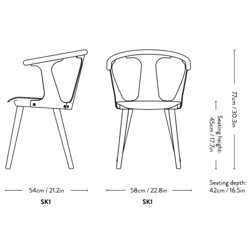 Zu den Highlights des In Between SK1 Stuhls zählen seine charakteristisch geschwungenen Linien und herausstechende Highlights wie die dynamische Kombination aus klassischen und modernen Linien. Darüber hinaus setzt er mit seinen glatten Oberflächen, der hochwertigen Materialkombination und der ausbalancierten Anmut nicht nur funktionale, sondern auch inspirierende Akzente. Der aus hochwertigem Eschen- bzw. Eichenholz gefertigte Stuhl misst 58 x 77 x 54 cm. Die Sitzhöhe beläuft sich auf 45 cm, die Höhe der Armlehne beträgt 70 cm, das Gewicht schlanke 10 kg. Außerdem haben Sie beim In Between SK1 Stuhl noch die Möglichkeit, sich zwischen verschiedenen Farben zu entschieden. Sehen Sie sich einfach in unseren Produkten um.