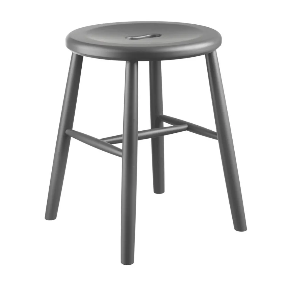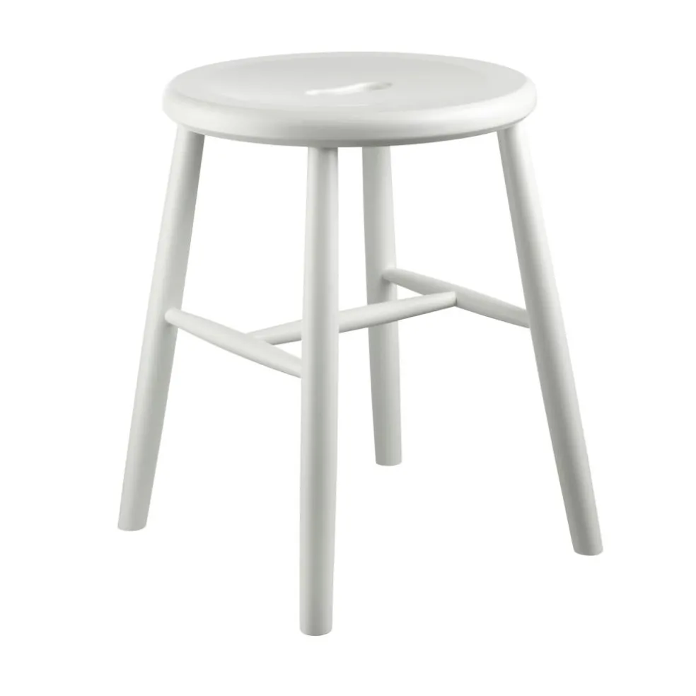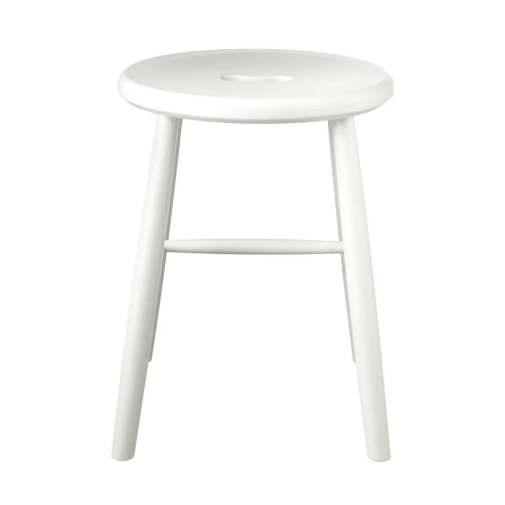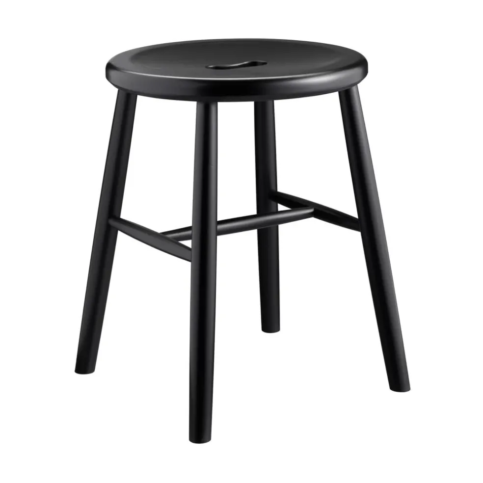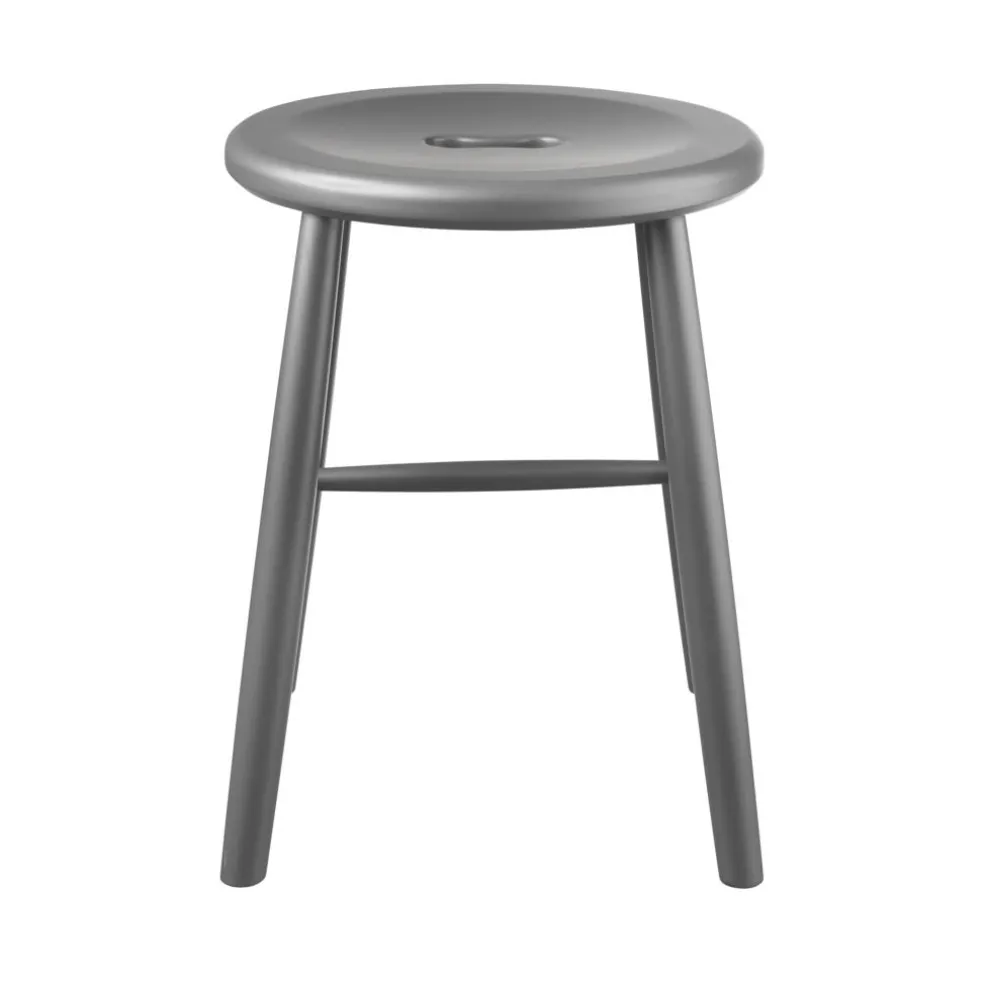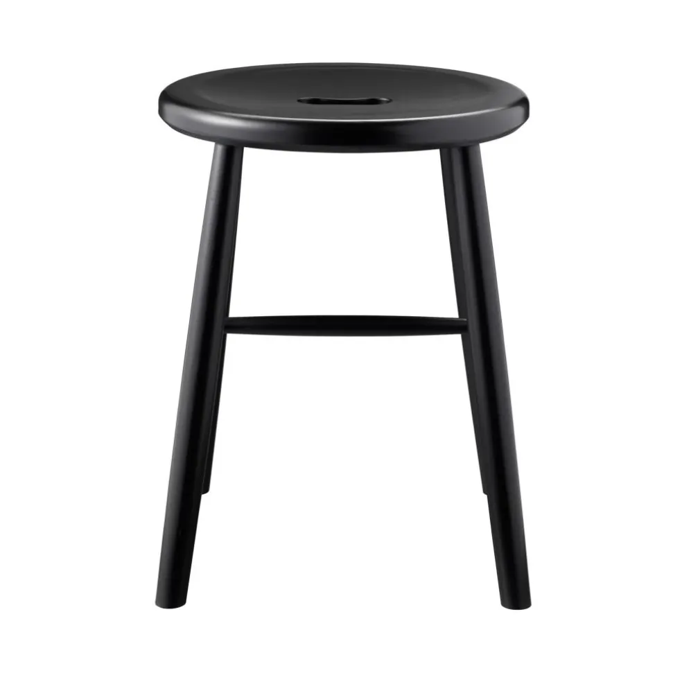 Der J27 Hocker hat eine runde Sitzfläche mit einem Durchmesser von 35 cm. Er ist 45 cm hoch und wiegt 4 kg. Es stehen Ausführungen in verschiedenen Farben und Holzarten zur Auswahl.