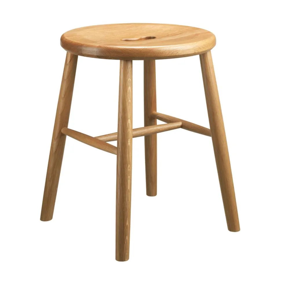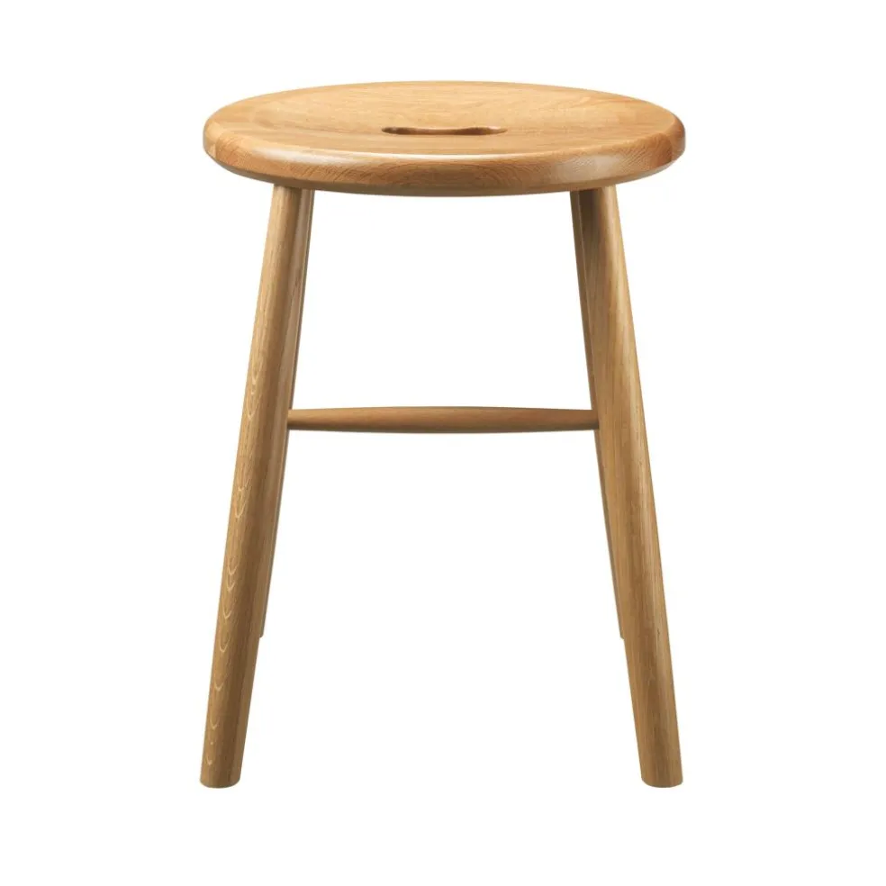Dank seiner großzügigen Sitzfläche mit der ergonomisch geformten Oberfläche und den stark abgerundeten Kanten bietet der J27 Hocker einen bequemen Sitzkomfort. Die ausgestellten Beine, die aus geradem Rundholz bestehen und untereinander verstrebt sind, versprechen eine hohe Stabilität. Bestehend aus nachhaltig produziertem Eichen- oder Buchenholz und mit wasserbasiertem Lack behandelt, zeichnet sich das praktische Designmöbel auch durch seine nachhaltige Herstellung aus. Darüber hinaus besticht der J27 Hocker nicht nur durch seinen geringen Platzbedarf. Er verfügt auch über ein praktisches Eingriffsloch an der Oberseite, das ein einfaches Verstellen ermöglicht. Das handliche wie formschöne Möbel passt zusammen mit anderen Designstühlen an einen Tisch und kann platzsparend unter dessen Platte geschoben werden. Weiters findet der J27 Hocker in jedem Raum eine Ecke, wo er dekorativ aussieht und auch schnell zur Hand ist, wenn zusätzliche Sitzgelegenheiten gebraucht werden.