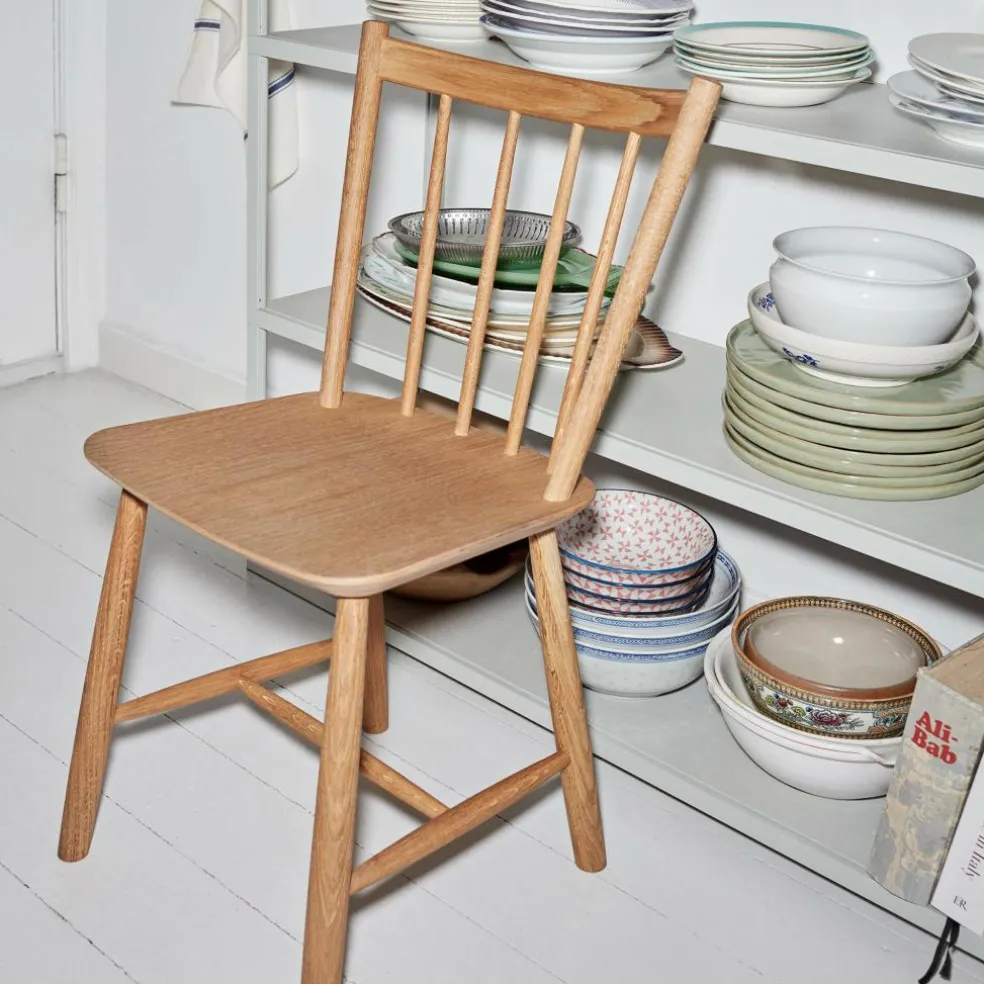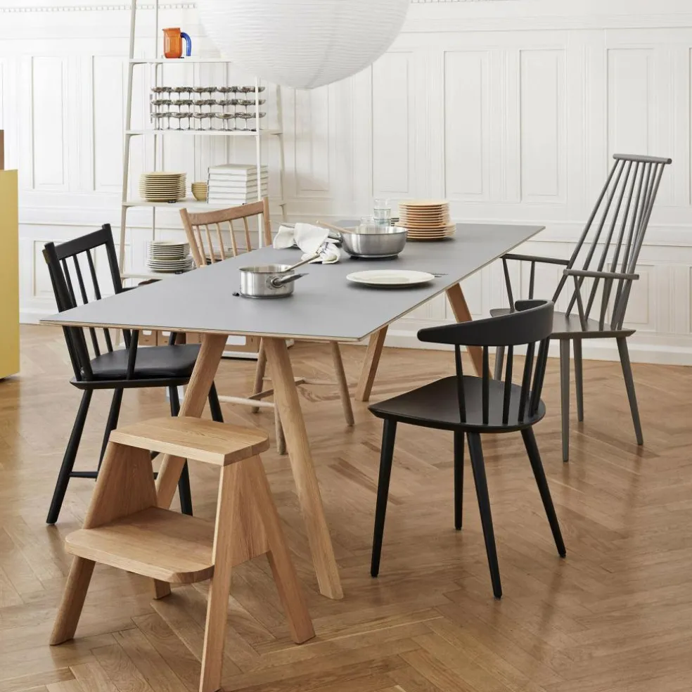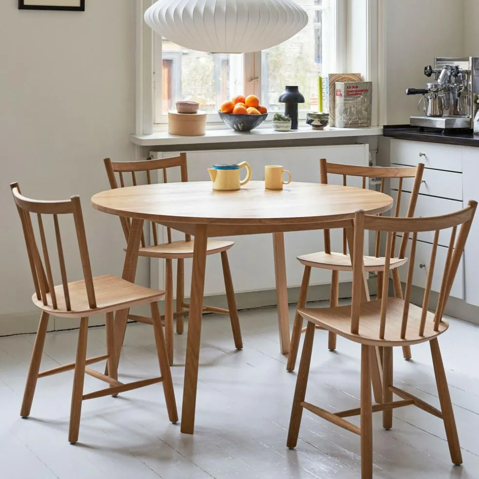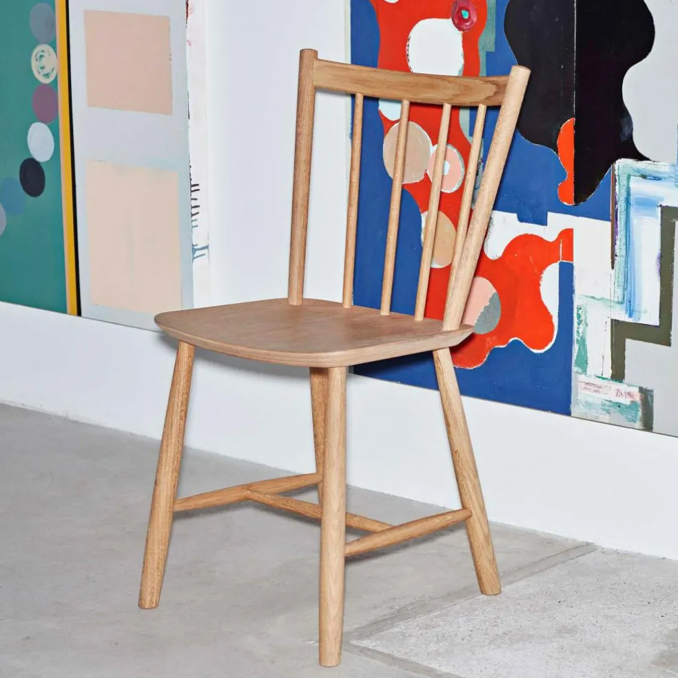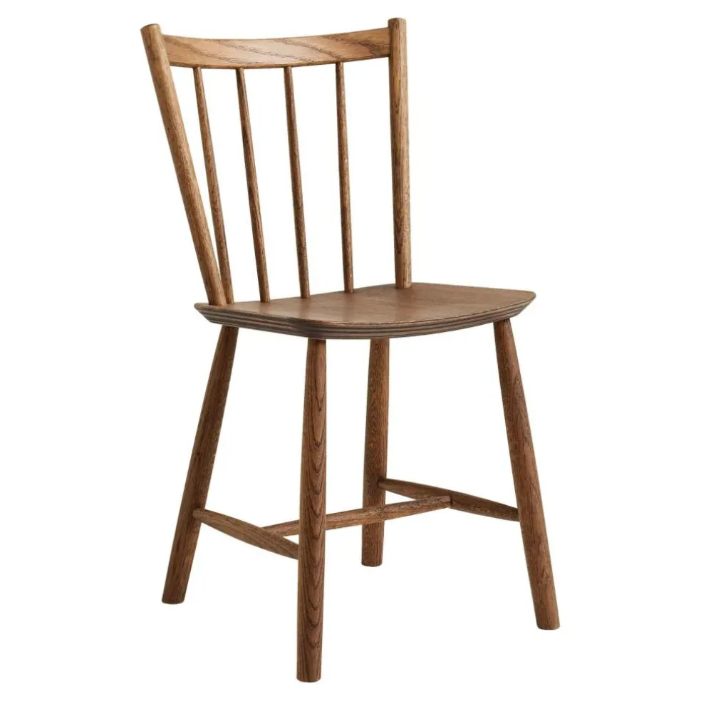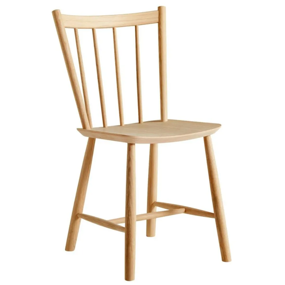 Der J41 Stuhl Eiche wurde von Børge Mogensen für die Marke HAY entworfen. Ursprünglich stammt die schlichte Sitzgelegenheit aus den 1930er-Jahren. Neue Fertigungsmethoden ermöglichten damals die Produktion größerer Stückzahlen. Das ließ die Preise sinken, weshalb der J41 Stuhl Eiche schon damals viele Wohn- und Esszimmer schmückte.